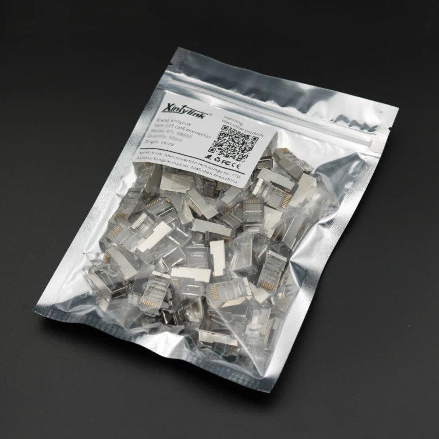 Comprar Xintylink-conector rj45 cat6, conector de Red cat 6, 8p8c, stp, rg, rj 45, lan, macho blindado, chapado en oro, cable ethernet