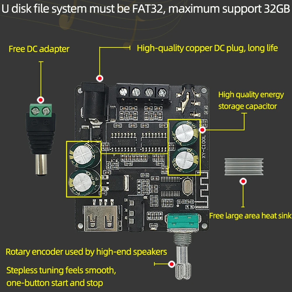 XINYI-placa amplificadora de potencia Digital Sini Audio 100Wx2 C100L, Bluetooth 5,0, altavoz de doble canal, módulo de amplificador de Audio estéreo, entrada auxiliar
