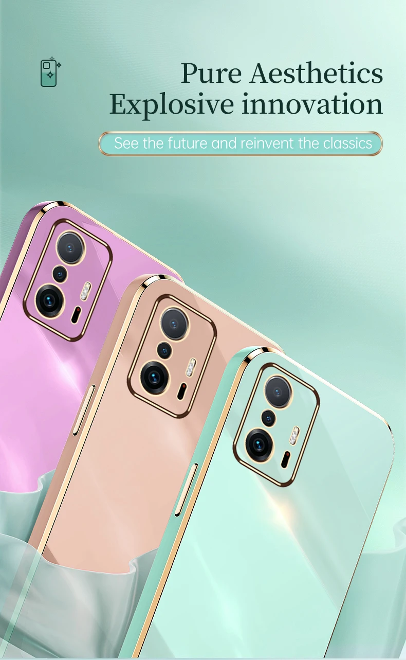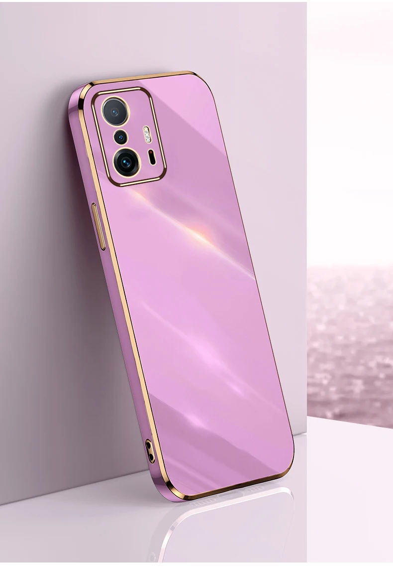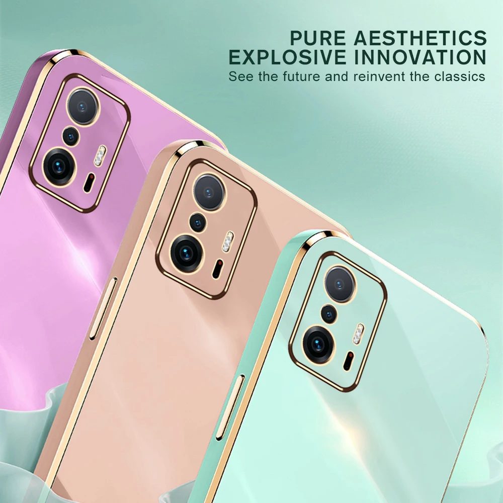 Comprar Xiomi 11T Pro funda de lujo chapada en oro, marco cuadrado, protección de teléfono, Xiaomi Mi11T Mi 11T Pro 5G, funda suave de TPU