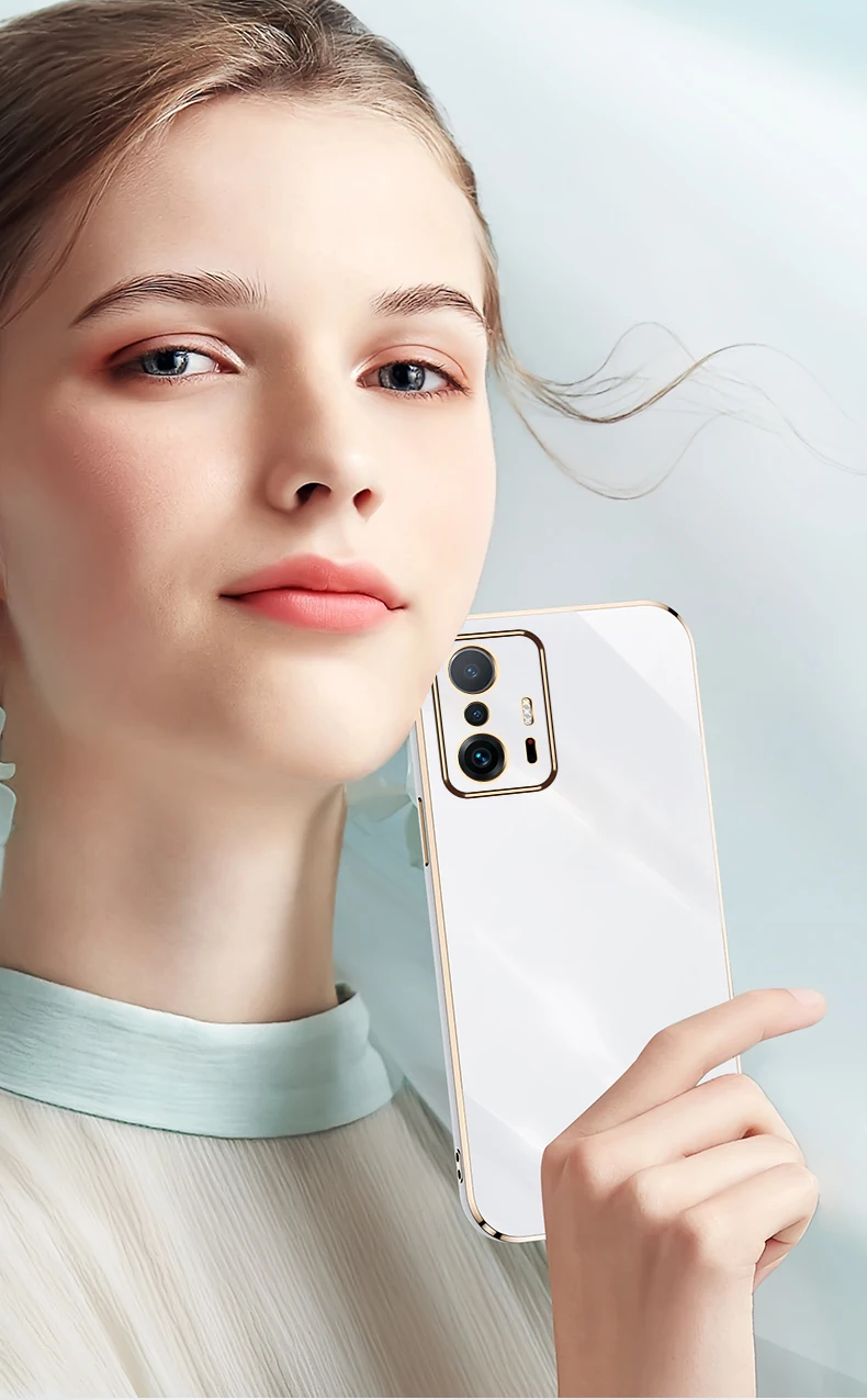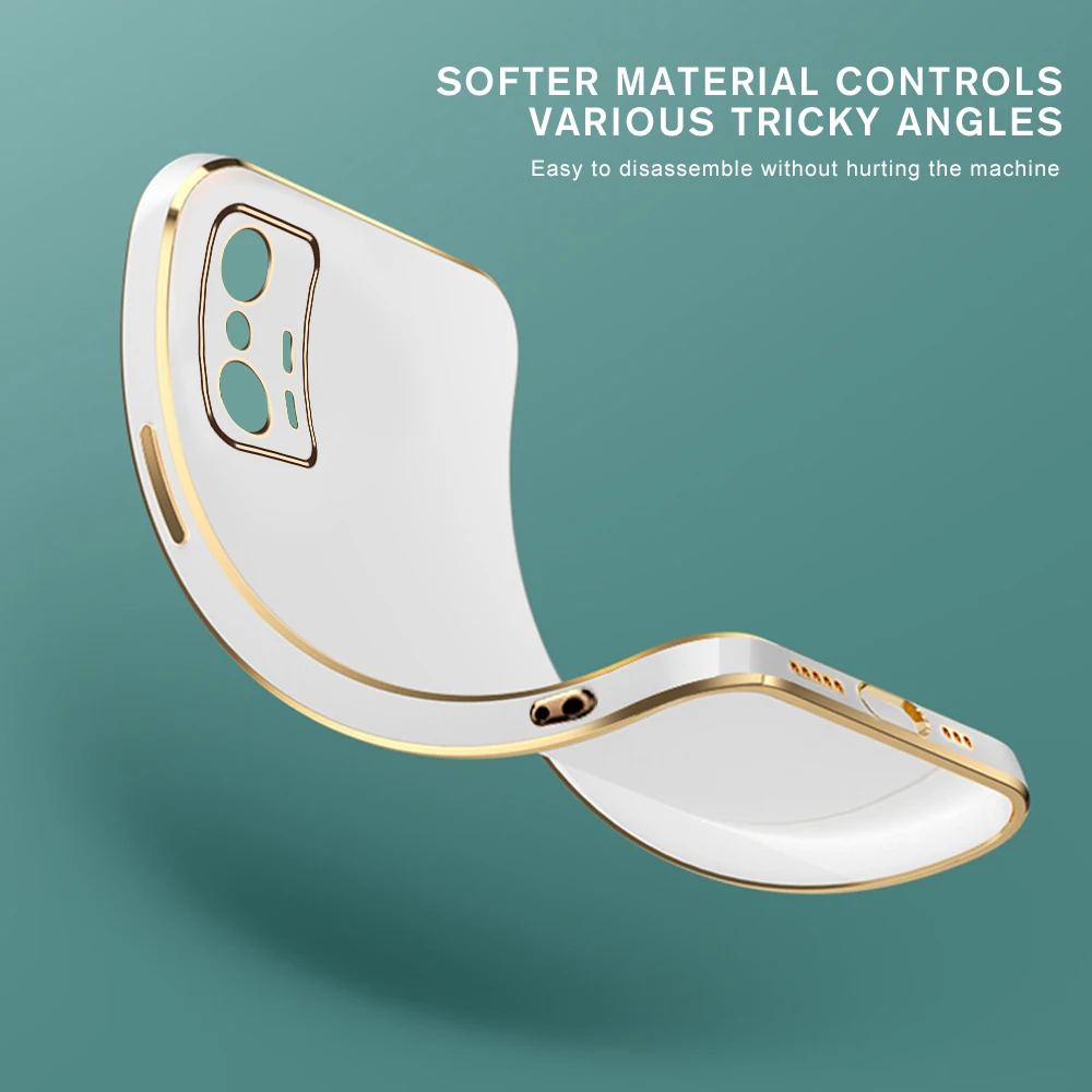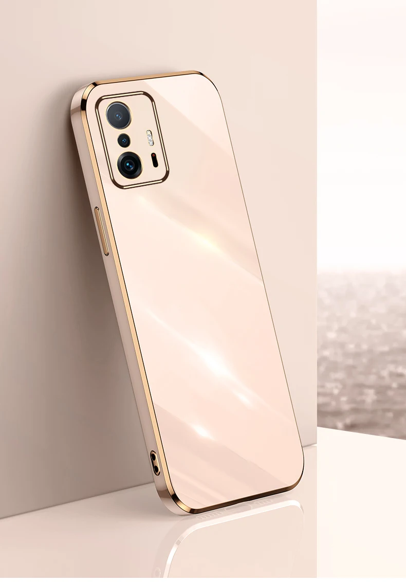 Funda Xiomi 11T Pro, funda protectora de teléfono cuadrada con marco dorado chapado de lujo para Xiaomi11T Xiaomi Mi11T Mi 11T Pro 5G, funda blanda de TPU