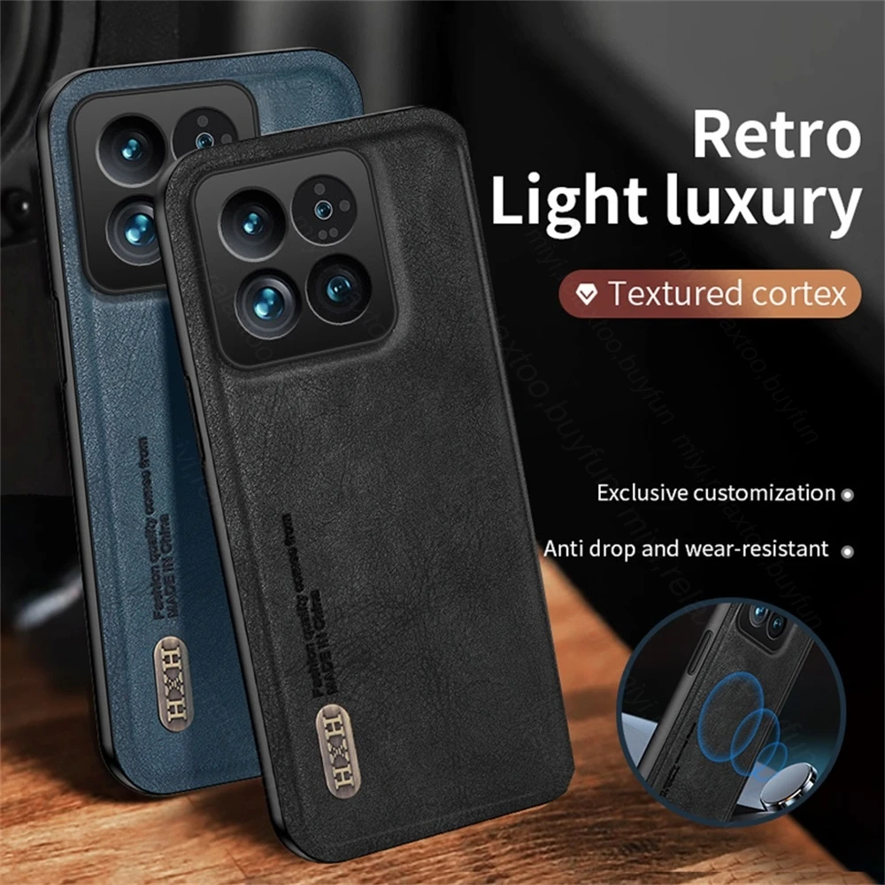 Comprar Xiomi-funda protectora con textura de cuero para Xiaomi Mi 14 Pro 5G 14 Pro, soporte magnético para coche