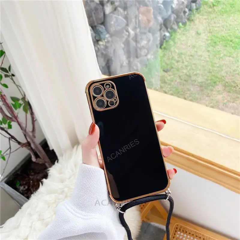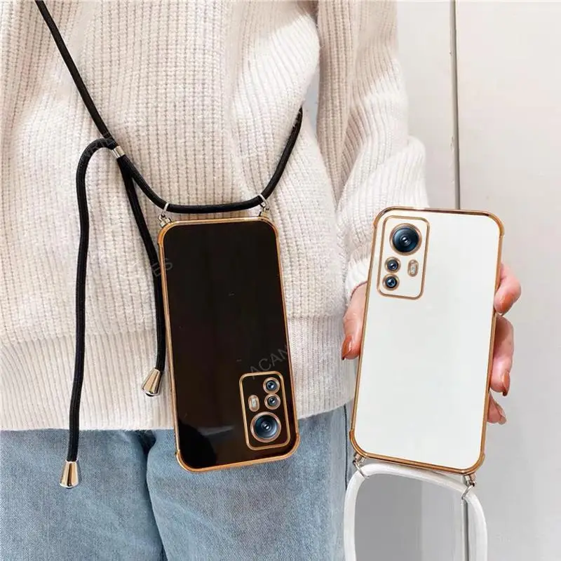 Xiomi Mi12 Mi12t chapado cuadrado correa cruzada cordón funda para Xiaomi Mi 12 t 12 t Pro Lite contraportada en Xiaomi12 12Lite