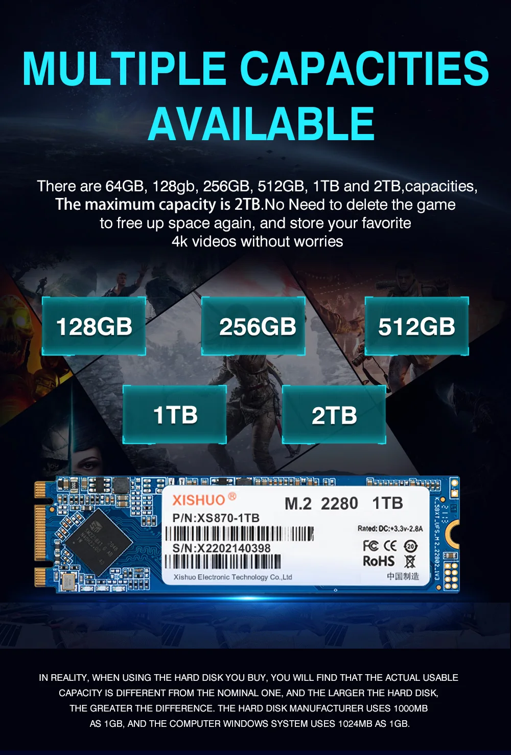 Comprar Xishuo-disco duro interno para ordenador portátil/de sobremesa, SSD de 256gb, 128gb, 512gb, 2242 GB, 1tb, SATA, NGFF, M.2, 2280, 256gb
