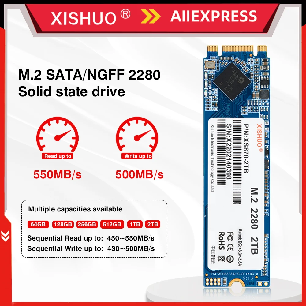 Comprar Xishuo-disco duro interno para ordenador portátil/de sobremesa, SSD de 256gb, 128gb, 512gb, 2242 GB, 1tb, SATA, NGFF, M.2, 2280, 256gb