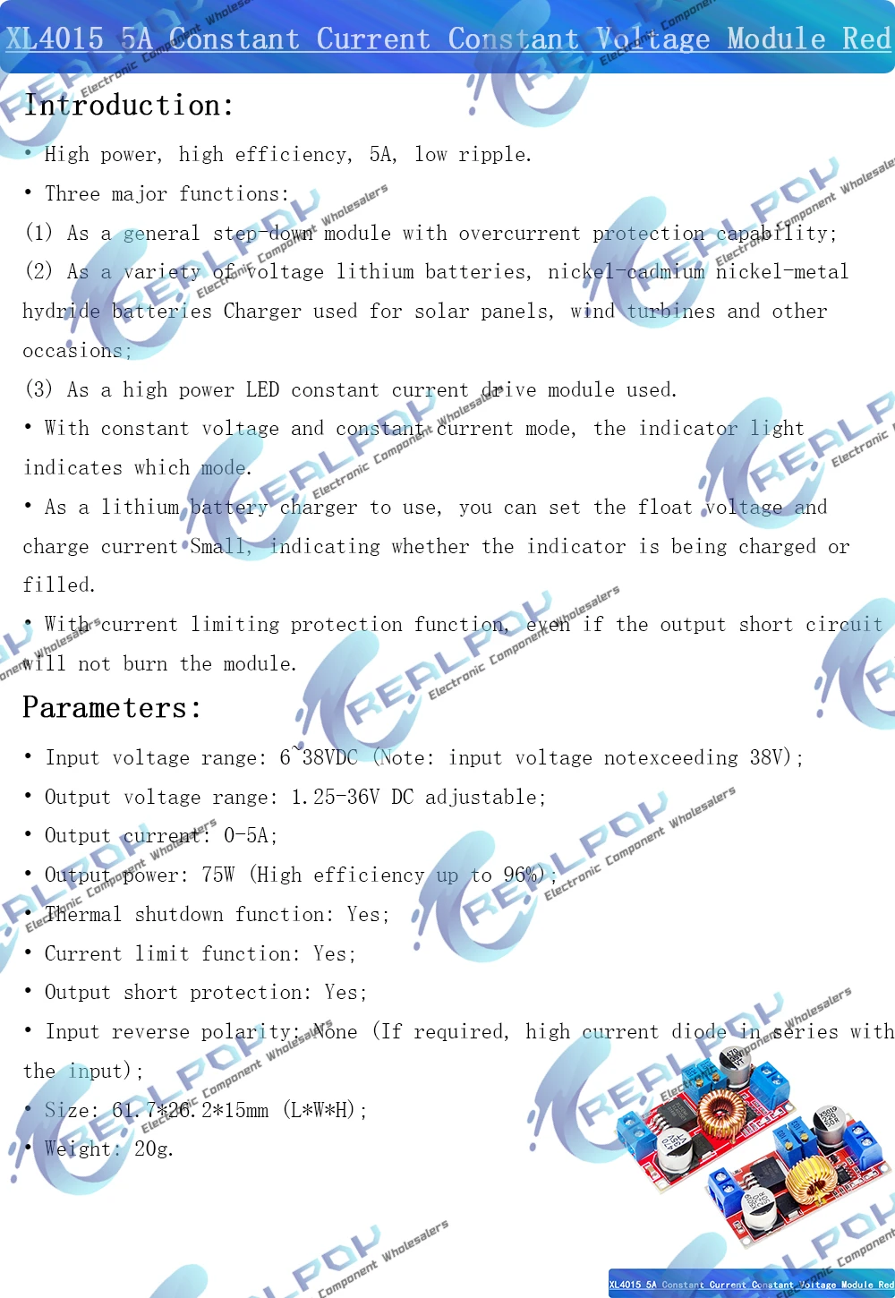 Comprar XL4015 5A DC a DC CC CV batería de litio Placa de carga reductora convertidor de potencia Led cargador de litio módulo reductor XL4015 E1