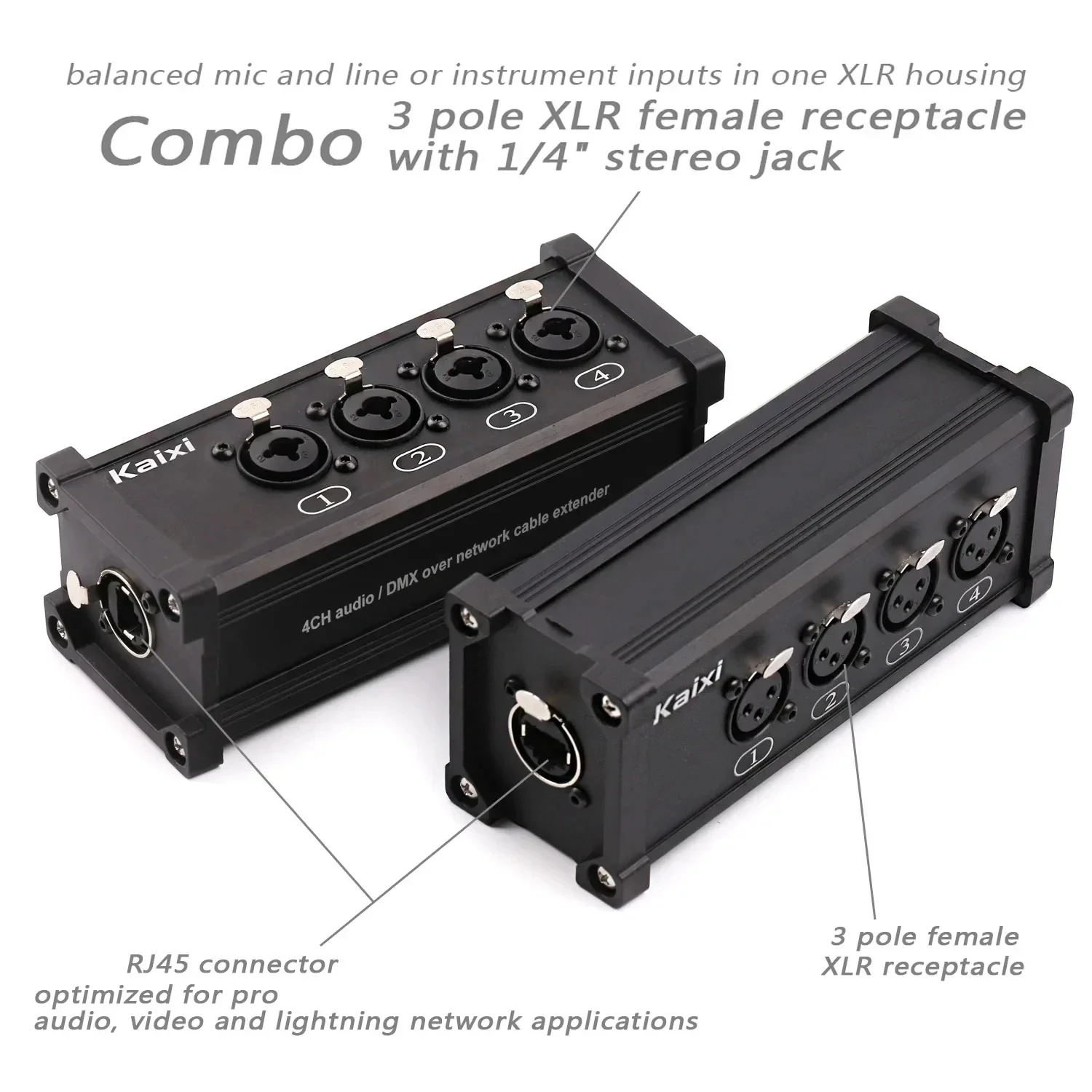 (3) Transmite 4 canales de señal analógica balanceada, AES o DMX