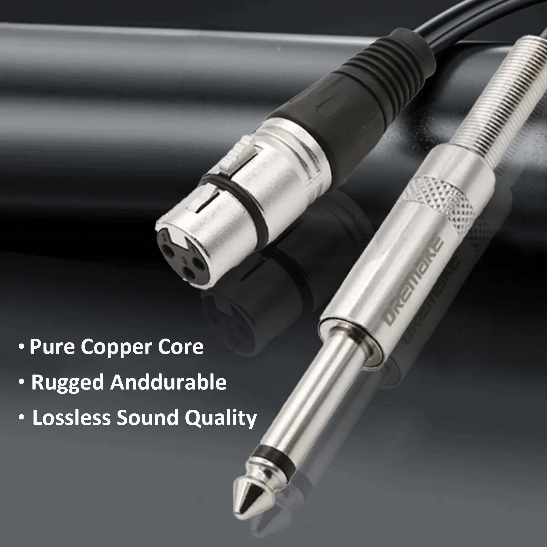 Cable de interconexión desequilibrado DREMAKE hembra XLR a 6,35 mm, este es un cable XLR a 1/4 que conecta un escopeta o micrófono condensador con conector a un equipo con un conector TS desequilibrado de 1/4 de pulgada, es para uso en una variedad de audio profesional aplicaciones.