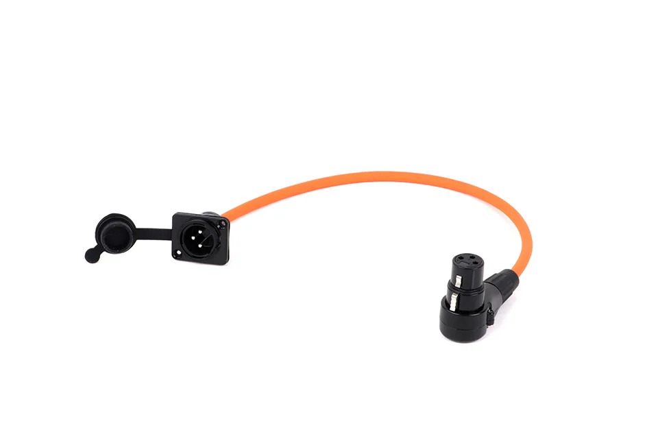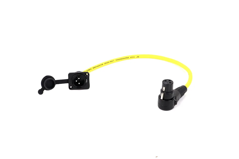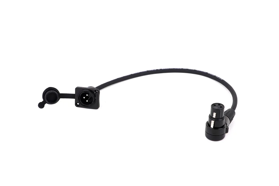 4、dシリーズxlrパススルーパンネルマウントオス-直角xlrメスケーブル。一方の端が標準xlrマイクプラグに取り付けられ、もう一方の端がオーディオデバイスの表面に取り付けられています。オーディオデバイスパネル/フレームの修理、交換、設置に適しています。