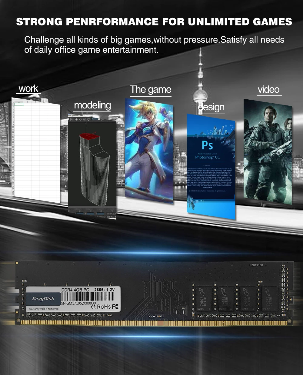Comprar XrayDisk-memoria DDR4 para PC, 4GB, 8GB, 16GB de Ram, 2400MHz, 2666MHZ, 1,2 V, Dimm, compatible con placa base Intel