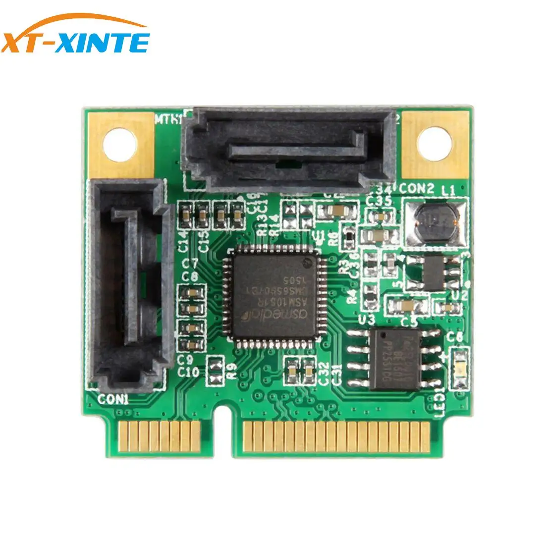 Comprar XT-XINTE Mini pci-express PCI-E SATAIII 3,0, tarjeta Raid de 6Gbps, Mini PCIE de 2 puertos SATA 3,0 SSD, tarjeta de expansión, unidad libre