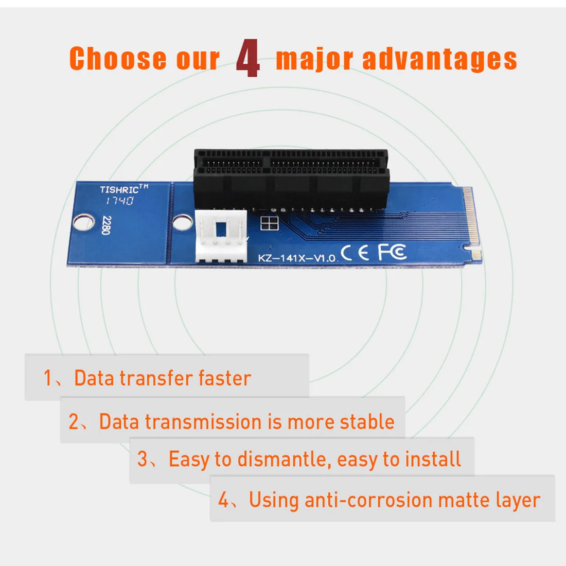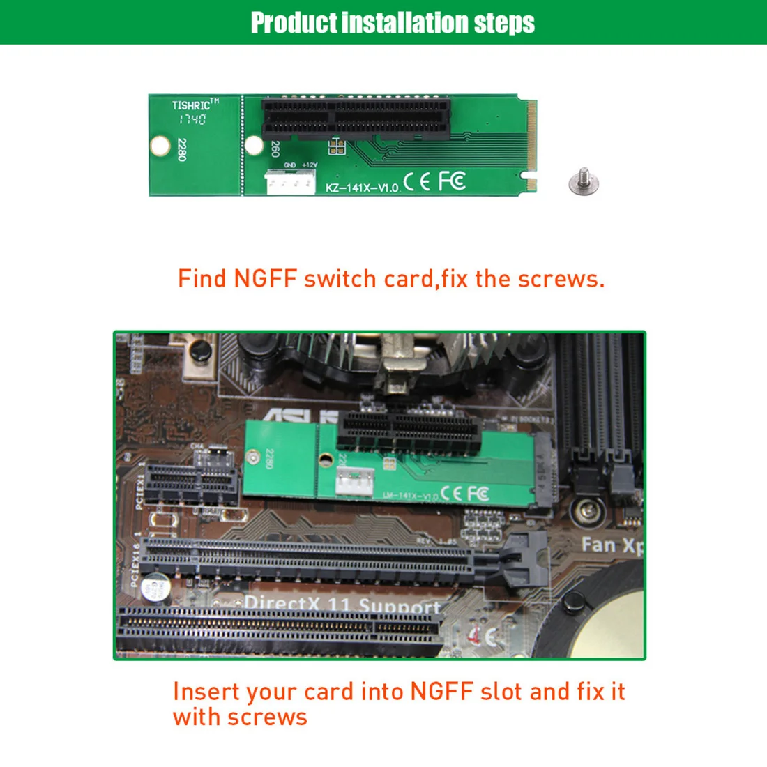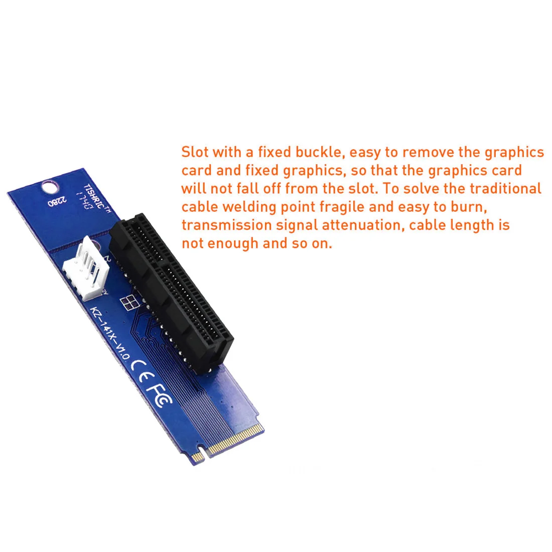 Conector de alimentación flexible de 4 pines disponible para una alimentación estable. 2 agujeros para tornillos 2260/2280 disponibles. Fácil instalación y no requiere controlador. Compatible con cualquier sistema operativo, como Windows, WinCE y Linux, etc.