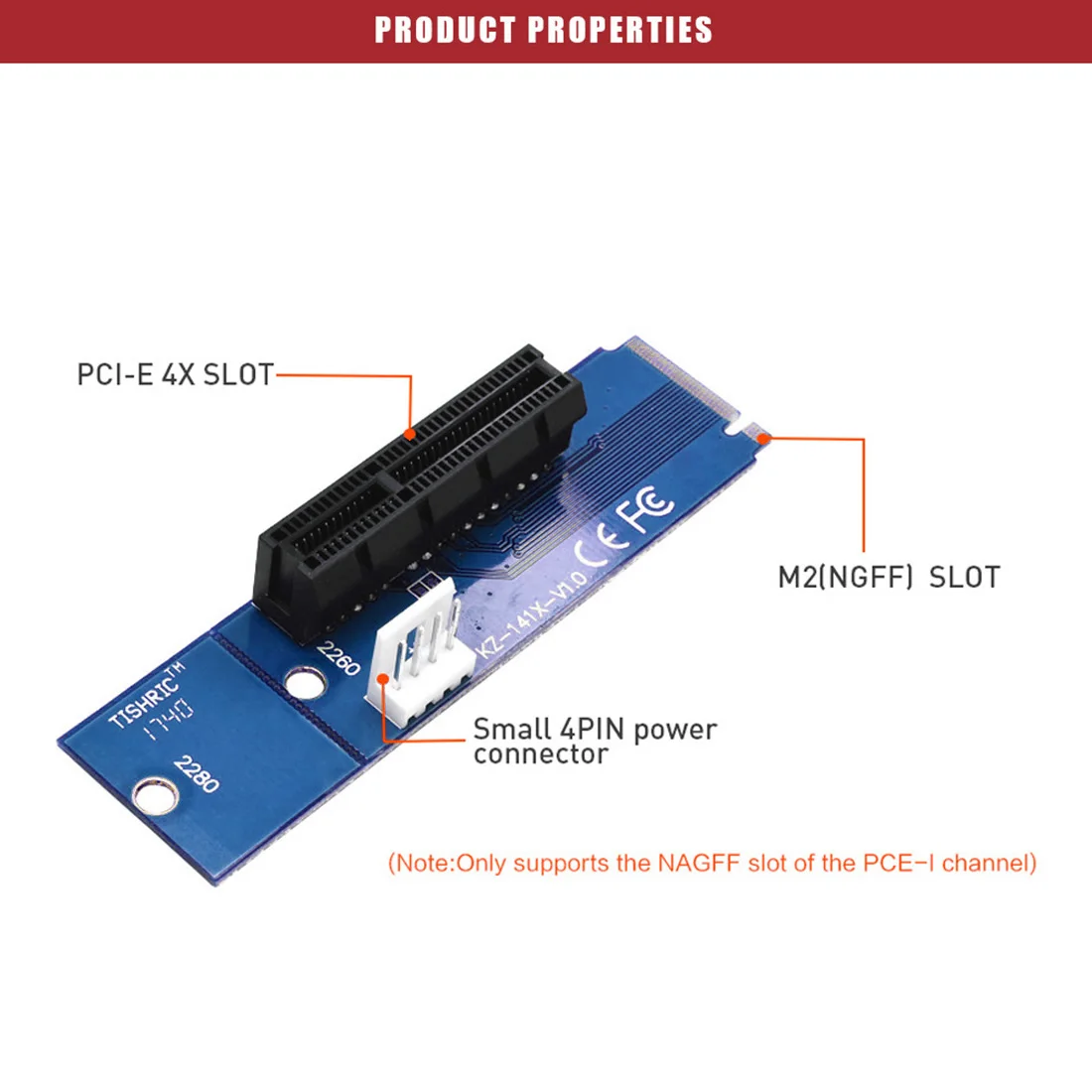 Admite transferencia de datos de hasta 4,0 GB/s. Soporta el enchufe 3 (llave M). Un enchufe hembra PCI-E 4X y un conector macho NGFF M.2 Key M disponible