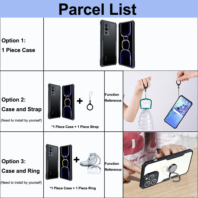 3. Las imágenes son sólo ejemplos.La posición específica de los orificios de la carcasa del teléfono y los botones son para el modelo de teléfono correspondiente.