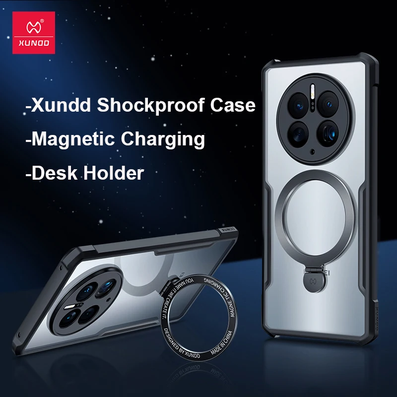 Comprar Xundd-funda con soporte magnético para Huawei Mate50 Pro, funda de carga inalámbrica transparente a prueba de golpes con soporte para Huawei Mate 50 Pro