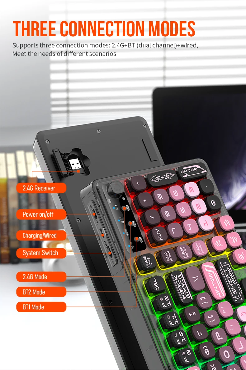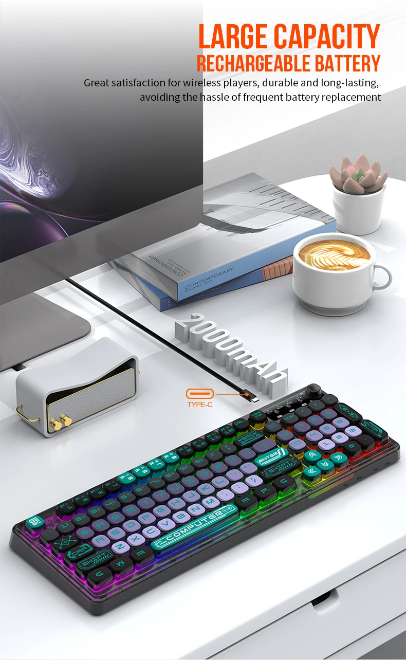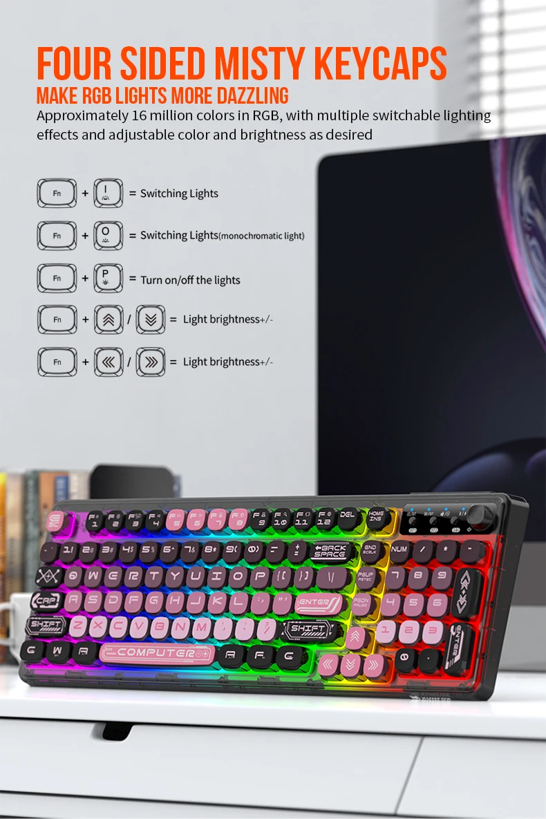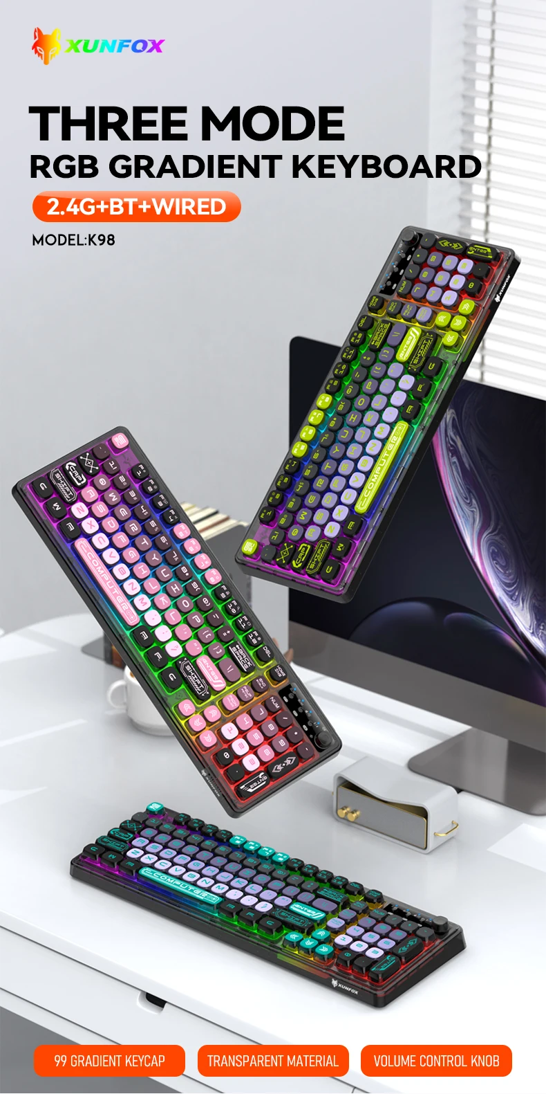 XUNSVFOX K98 teclado inalámbrico Bluetooth para juegos 99 teclas gradiente teclas tres modos RGB efecto de iluminación e-sports juego Oficina