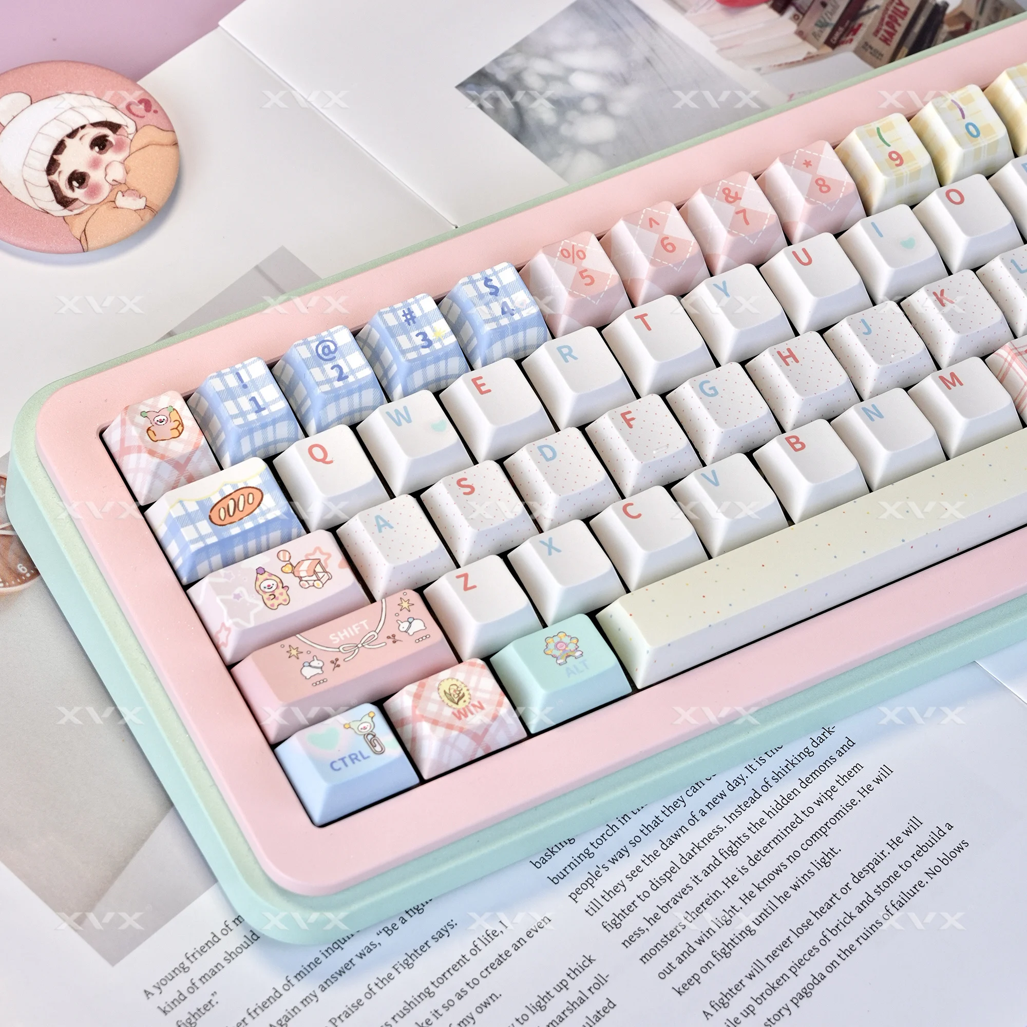 Comprar XVX Pink pbt y pc Transprent Keycaps Diseño de dibujos animados Cherry Profile 157 teclas para teclado mecánico Cherry MX