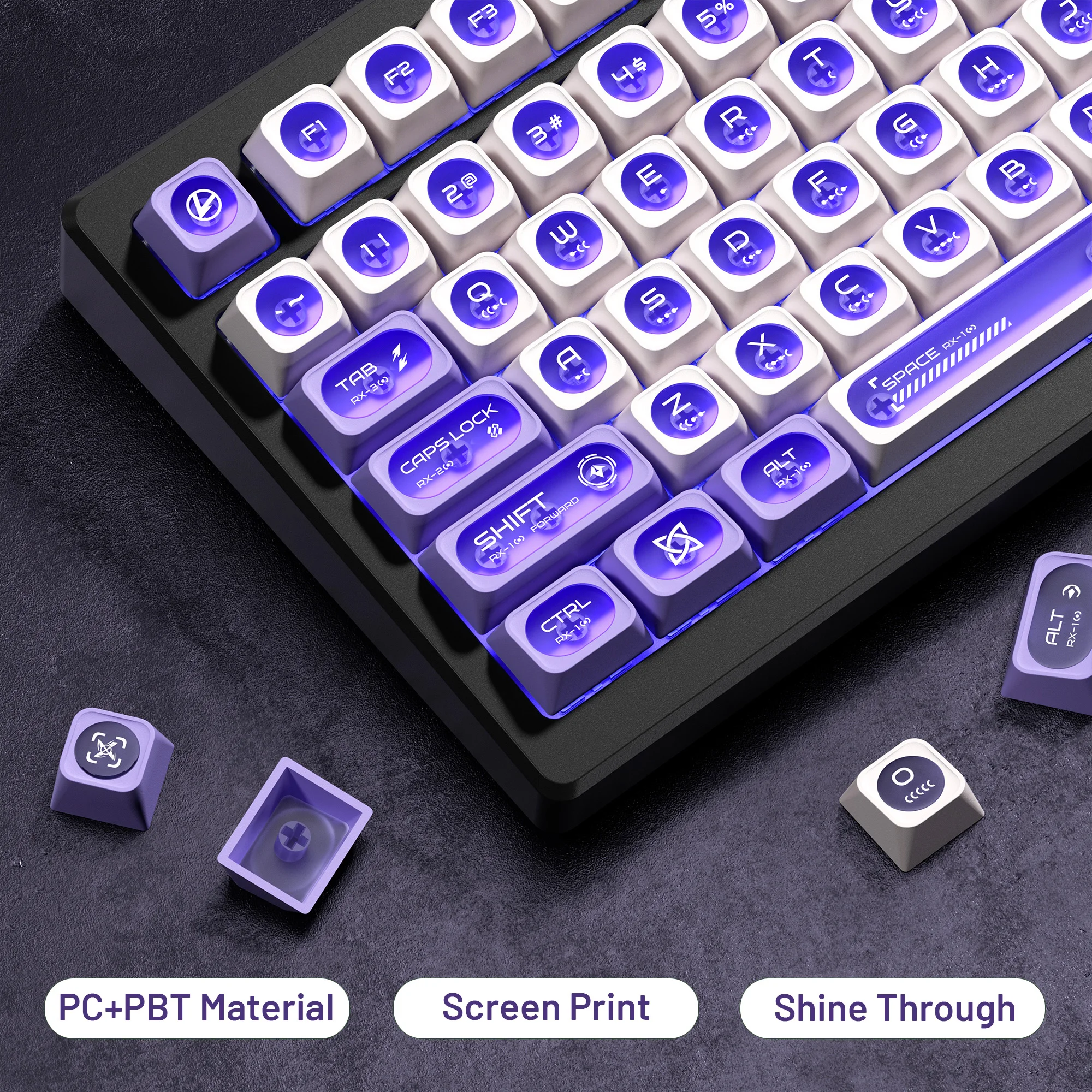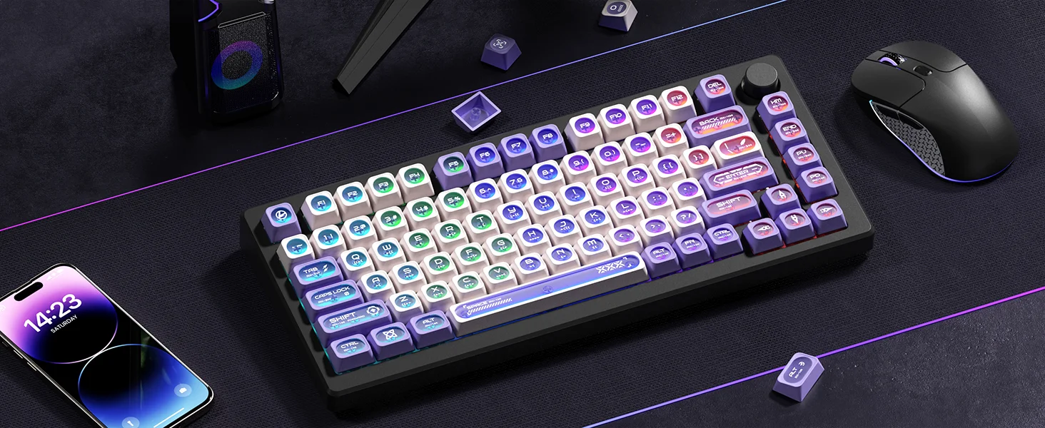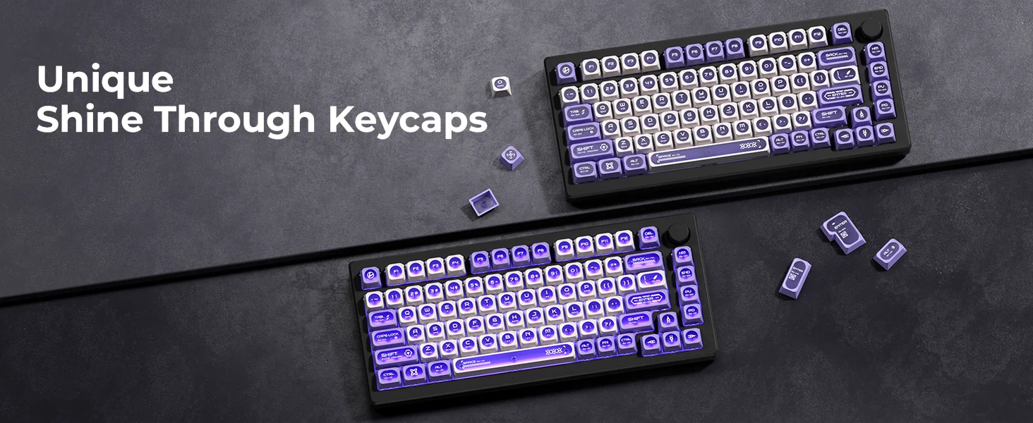⭐【Brilla a través de teclas】Mejore sus configuraciones de juego y escritura con nuestras teclas blancas y moradas.Con un diseño distintivo Crescent Moon Shine, estas teclas mejoran la iluminación RGB de su teclado, creando una pantalla visual fascinante e inmersiva que sorprenderá a usted y a sus compañeros.