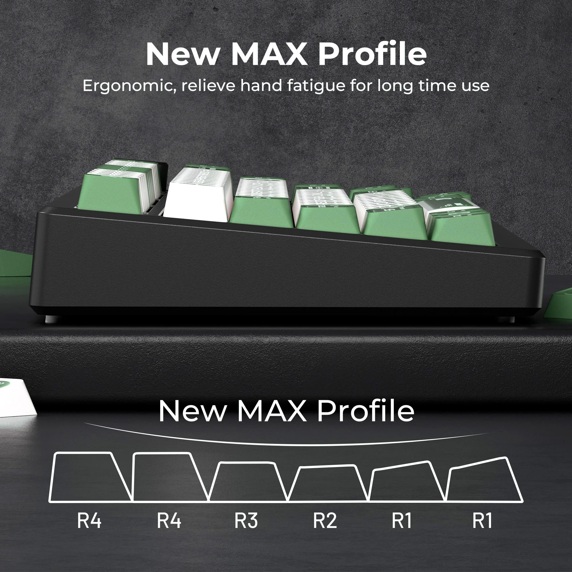 ⭐【Nueva innovadora tecla de perfil MAX】 – Redefinyendo la comodidad y la ergonomía del teclado.Con un nuevo perfil MAX que se divide de las mediciones estándar de fábrica, estas teclas tienen una superficie ampliada, meticulosamente diseñadas para adaptarse al contorno natural de sus dedos.Este revolucionario avance ofrece una experiencia de escritura insuperable, ofreciendo mayor comodidad y reduciendo la fatiga incluso durante un uso prolongado.Con MAX Profile Keycaps, aumente su productividad y sus sesiones de juego a nuevas alturas de comodidad y rendimiento.