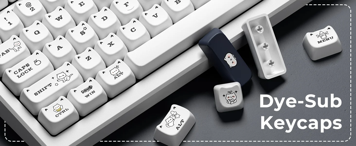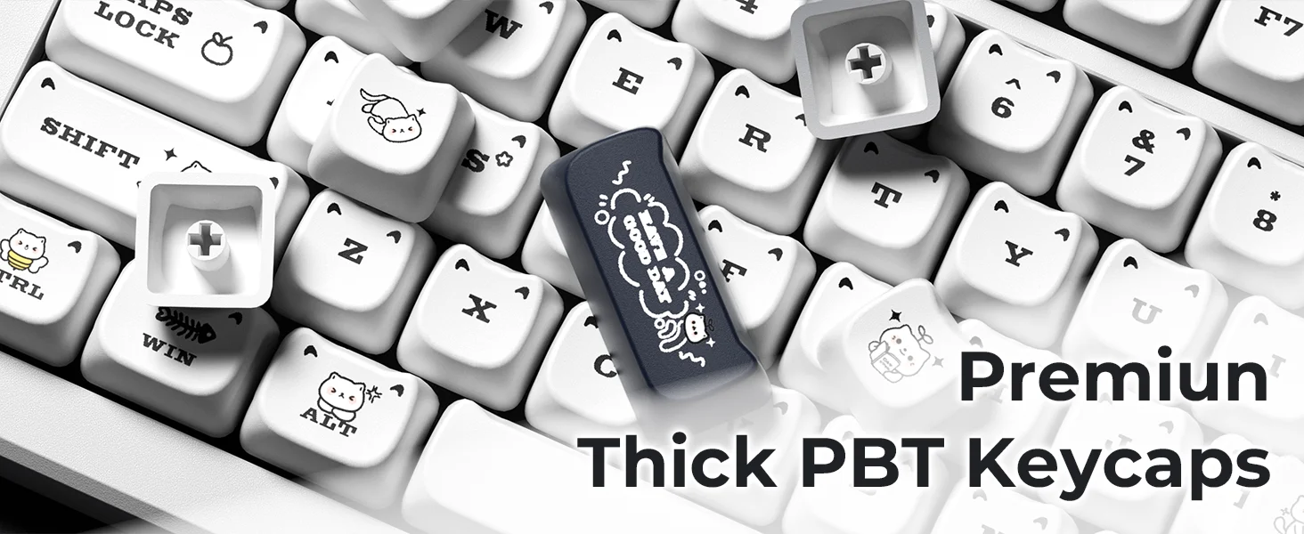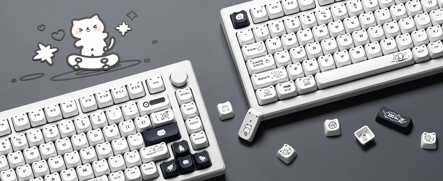 Comprar XVX-teclas Meow para teclado mecánico de sublimación térmica, perfil MAO blanco, PBT, juego de gato para regalo de niñas, 143 teclas