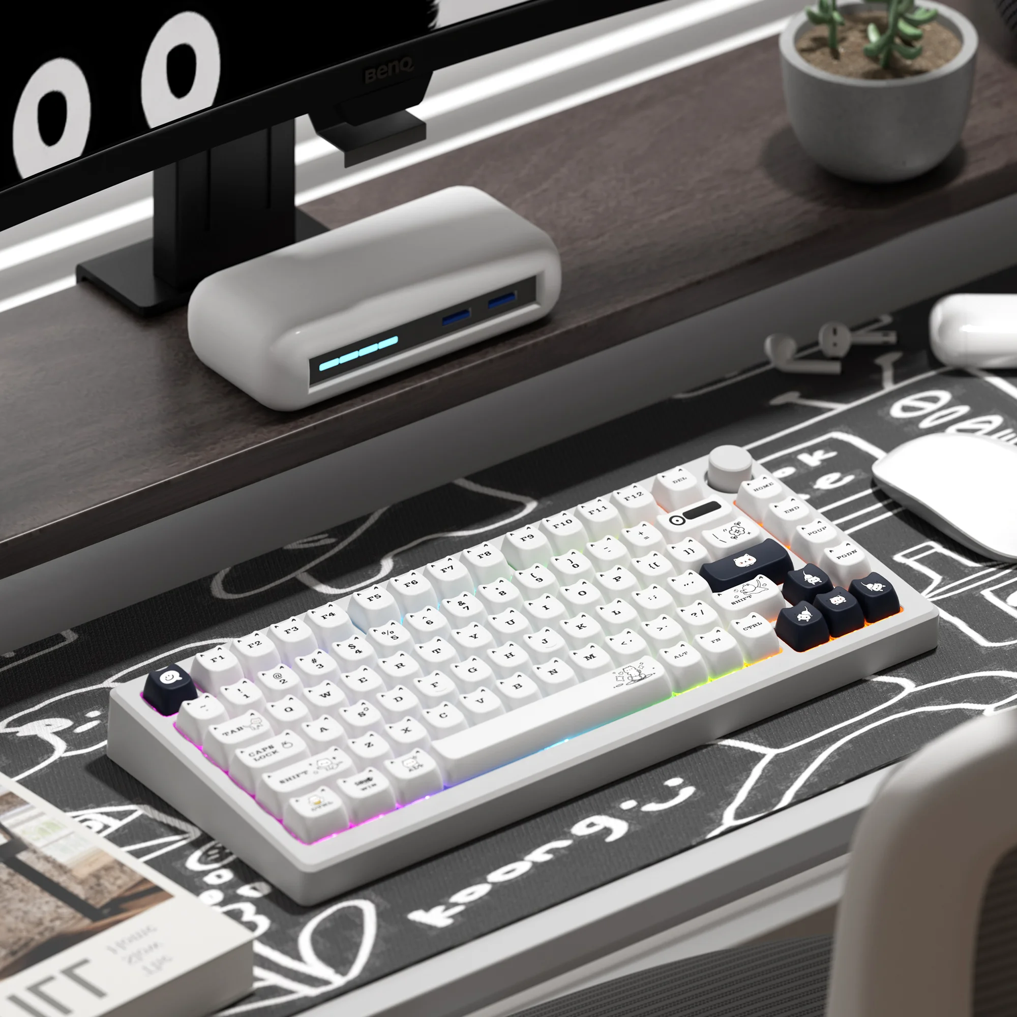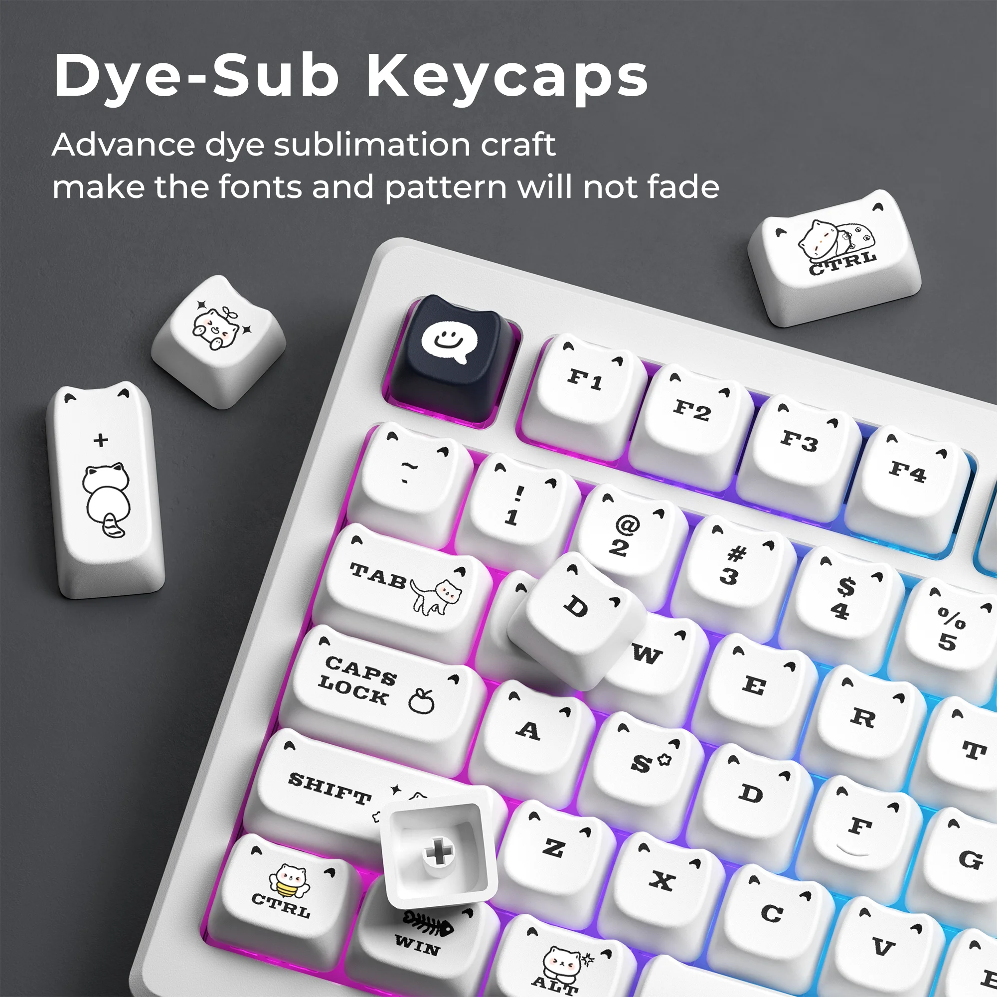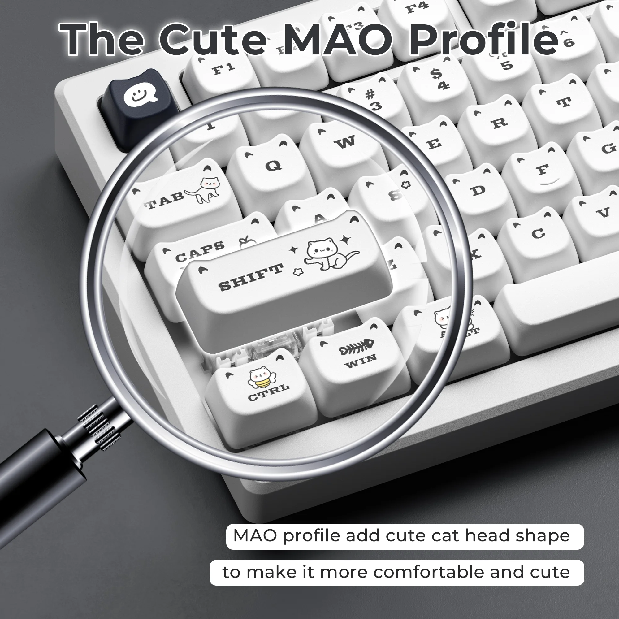 Comprar XVX-teclas Meow para teclado mecánico de sublimación térmica, perfil MAO blanco, PBT, juego de gato para regalo de niñas, 143 teclas