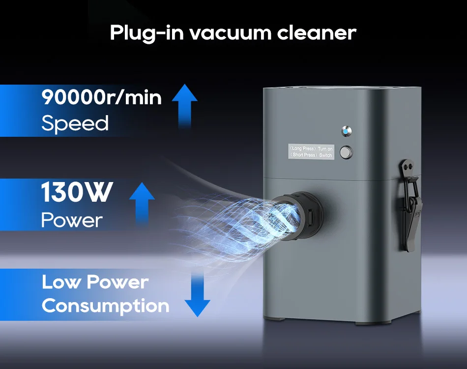 Diseñada para brindar precisión y comodidad, esta aspiradora de escritorio combina una potente succión con funciones fáciles de usar para mantener el área de reparación de su teléfono impecable: