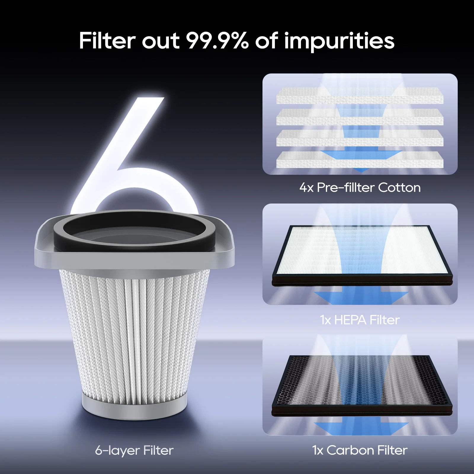 ✅ Filtración avanzada de 6 capas: Equipado con un sistema de 6 capas (4x prefiltro de algodón + 1x filtro HEPA + 1x filtro de carbón), elimina el 99,9% de las impurezas, asegurando una salida de aire limpio y protegiendo su espacio de trabajo de partículas dañinas💨.