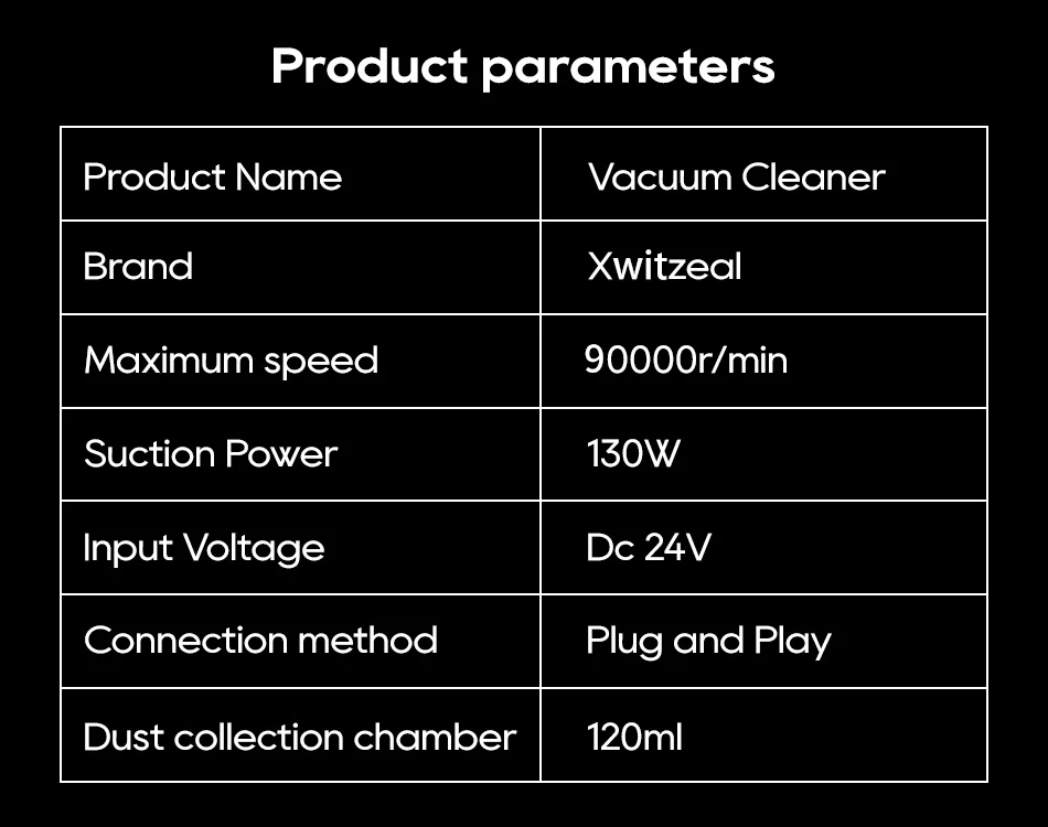 1 × aspiradora de escritorio Xwitzeal 22000pa (cuerpo de aleación de aluminio)