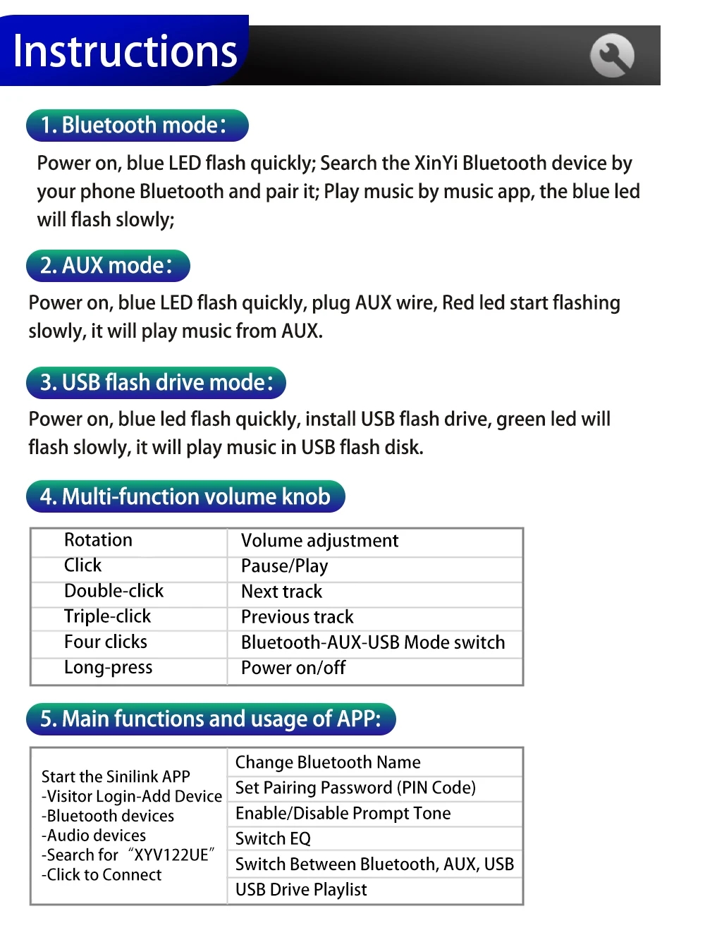 5.Múltiples opciones de decodificación, compatible con decodificación de audio Bluetooth y decodificación de unidad flash USB.