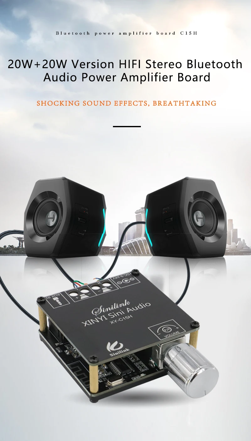 Comprar XY-C15H MINI amplificador de potencia Digital de Audio inalámbrico compatible con Bluetooth 5,0, placa estéreo, módulo amplificador de DC9-24V 20Wx2