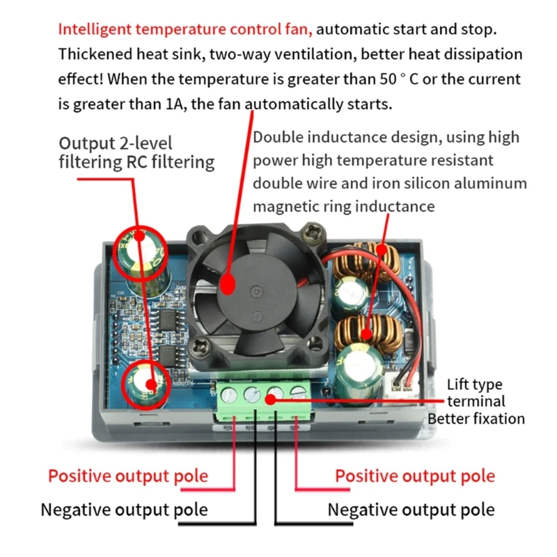 El módulo de fuente de alimentación de corriente y voltaje ajustable digital, conveniente, se puede utilizar directamente en proyectos de ingeniería.