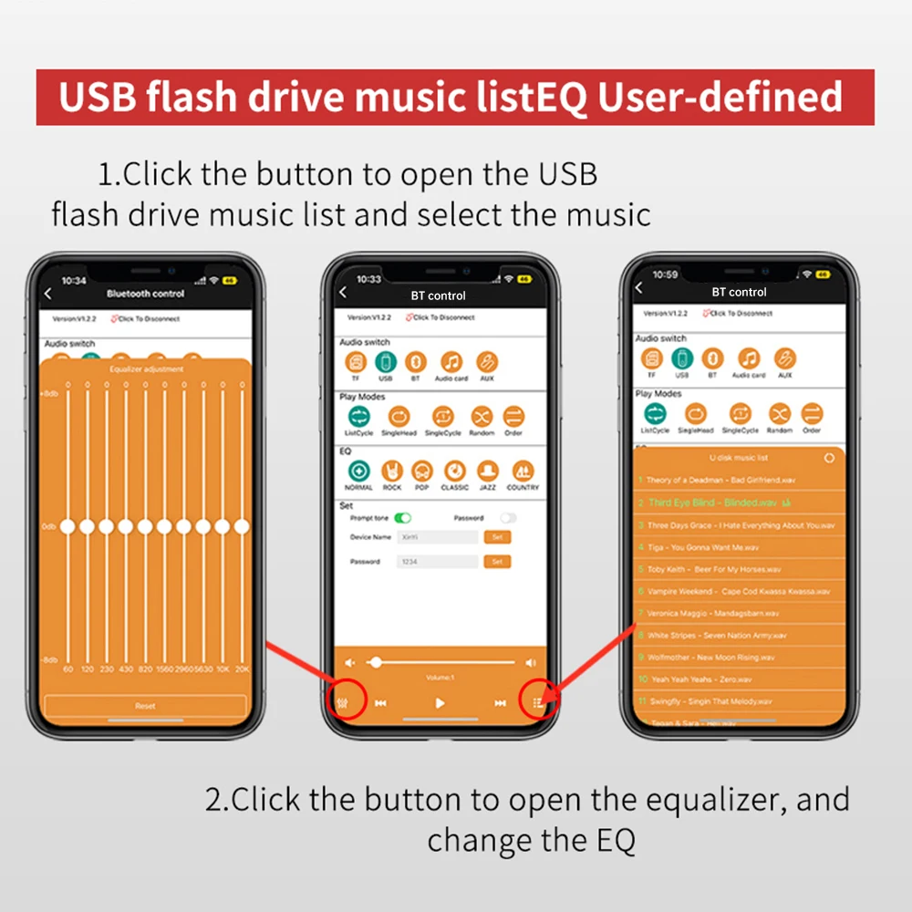 5.Entrada multifuncional: admite Bt 5.2, AUX, unidad flash USB, tarjeta de sonido USB y múltiples fuentes de entrada de audio, compatible con múltiples formatos de audio.