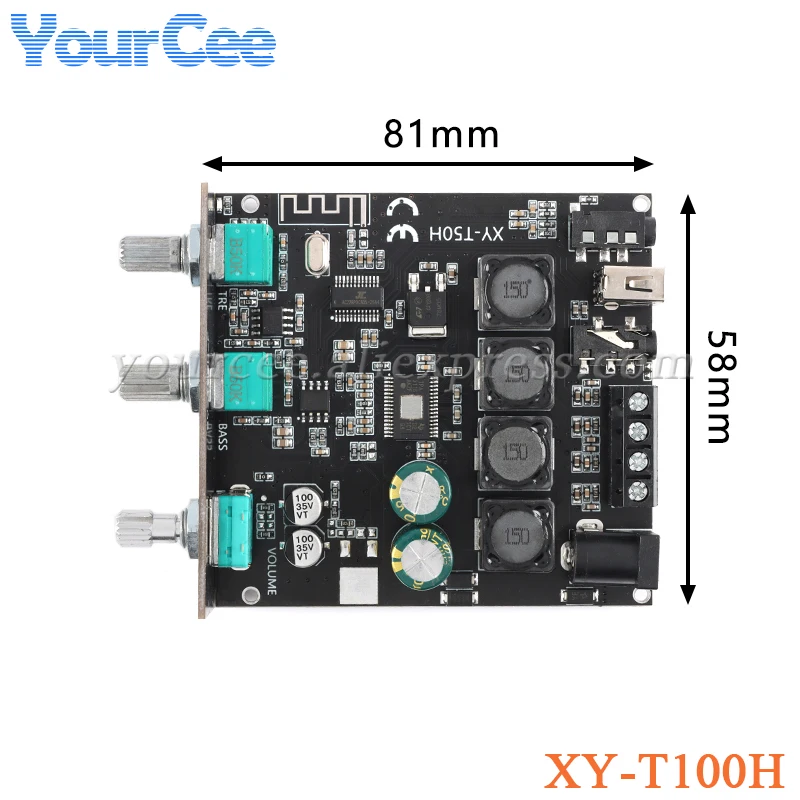 Comprar XY-T100H-placa amplificadora de Audio para cine en casa, amplificador estéreo de agudos y graves, TPA3116D2 Ble 100, 100w + 5,0 w, XY-T100L