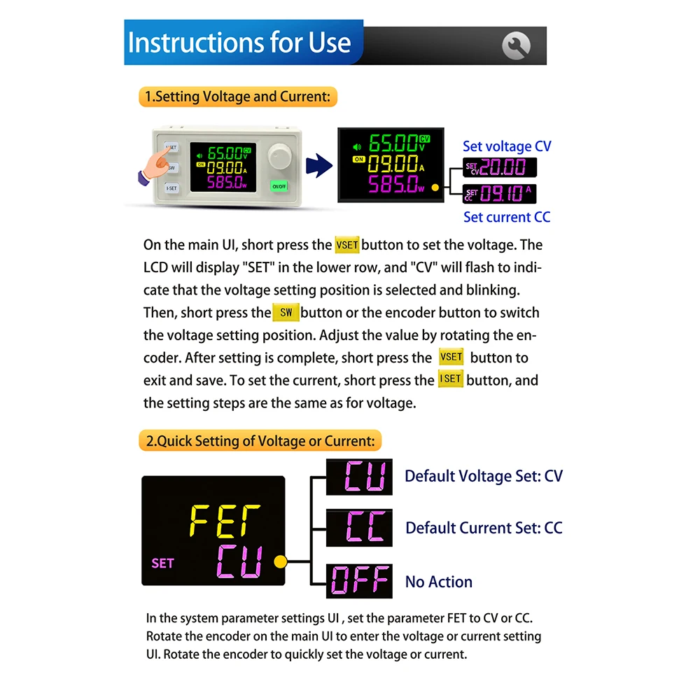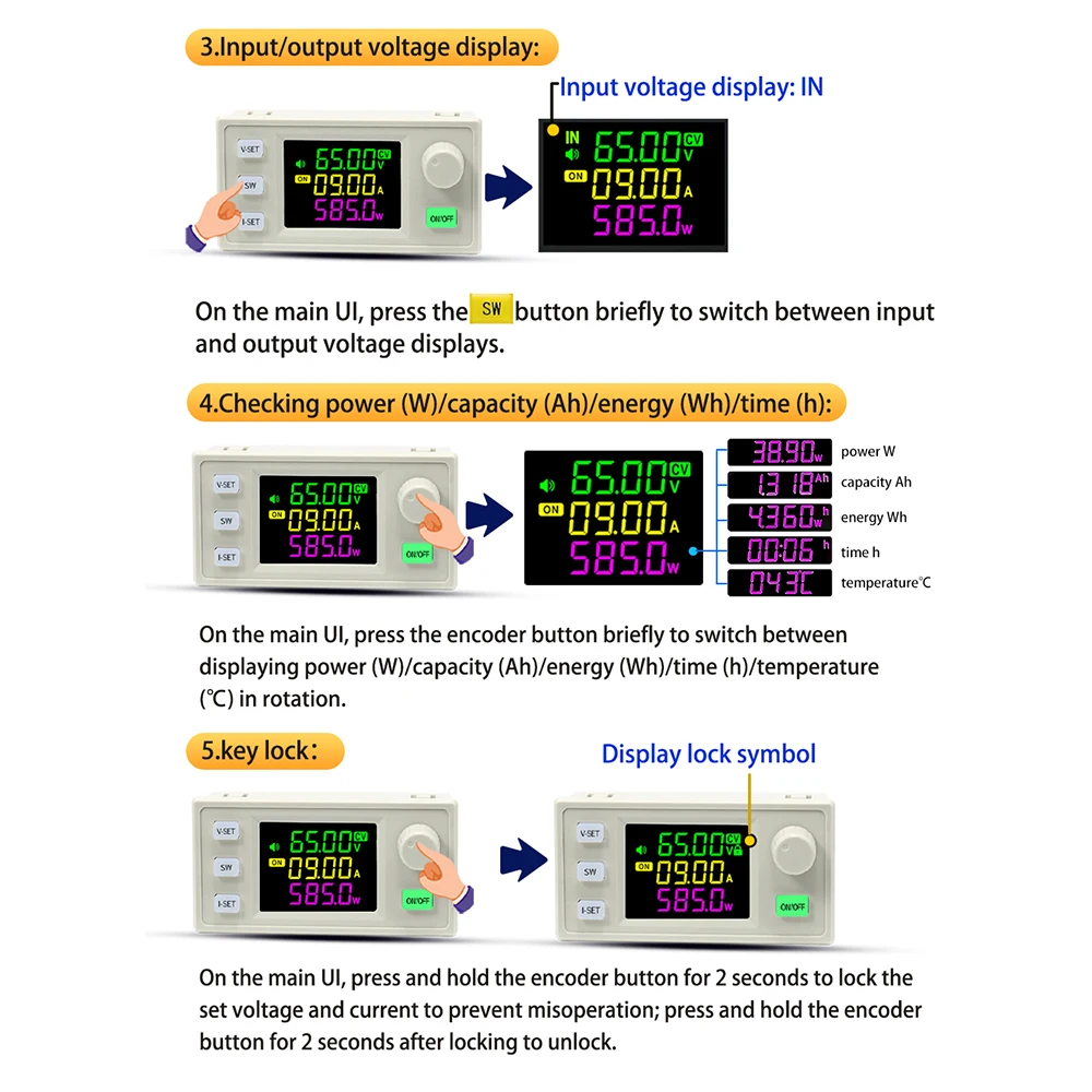 5.El producto es una fuente de alimentación reductora, el voltaje de salida máximo=voltaje de entrada * 0,945