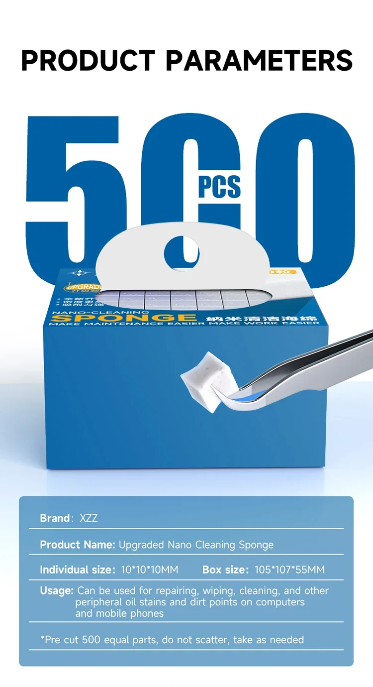 XZZ XINZHIZAO 500 Uds Nano esponja limpieza sin residuos pantalla de teléfono PCB placa base vidrio trasero cámara soldadura Flujo limpieza de aceite