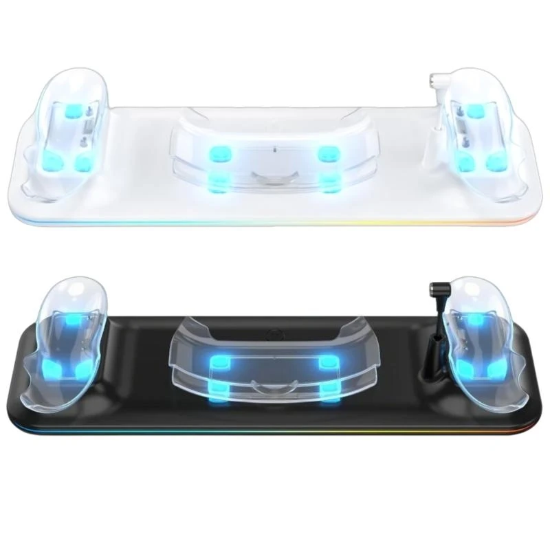 Esta estación de carga rápida se integra perfectamente en su sala de estar o sala de juegos, manteniéndose organizada y completamente para su próxima aventura virtual.