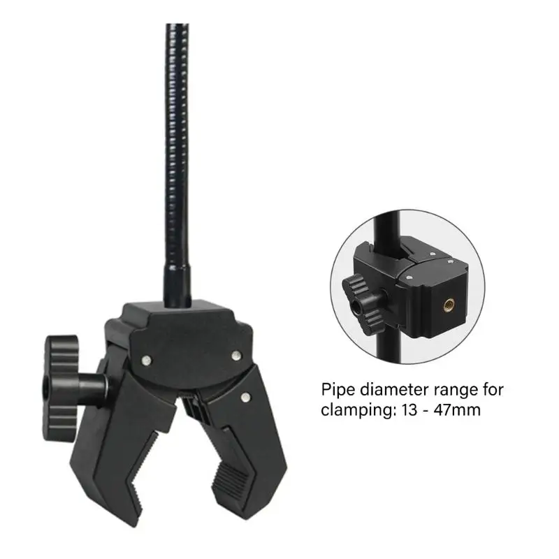 Planumberebog de sujeción firme: desarrollado para sujetar de forma segura tubos redondos con diámetros que oscilan entre 15 mm y 45 mm y sujetar objetos de hasta 35 mm de espesor, brindando estabilidad para su equipo.
