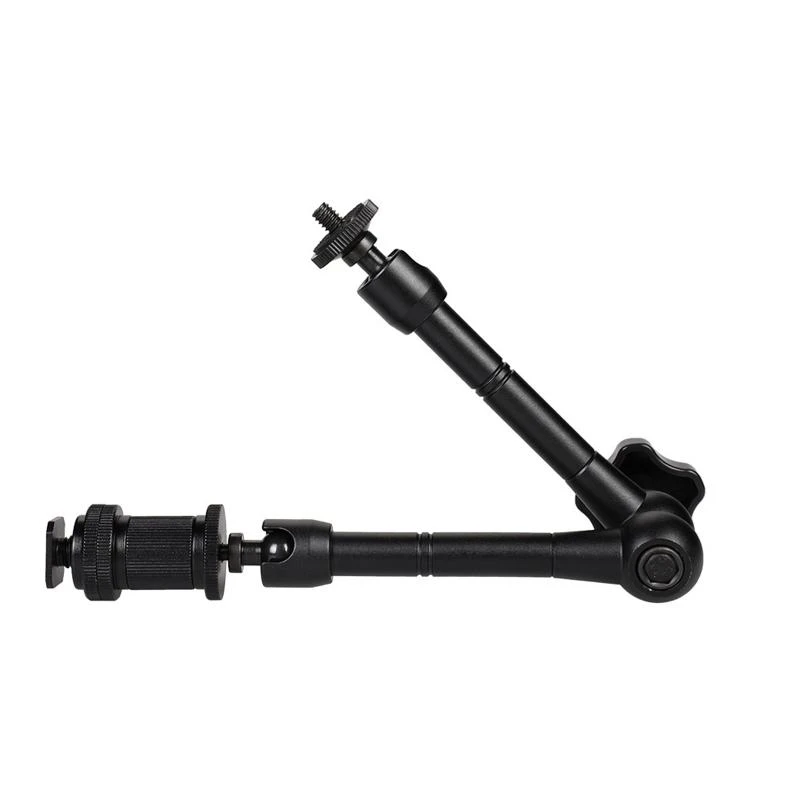 El brazo tiene un tornillo estándar de 1/4" en ambos lados, puede funcionar con monitor archivado, trípode, grabadora, luz de relleno LED, luz de flash, soporte de clip para teléfono celular y cualquier dispositivo con orificio de 1/4".