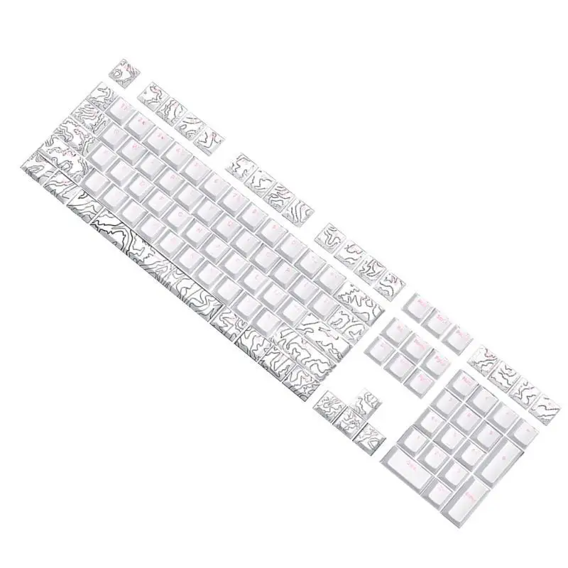 Características:OOTDTYMejora tu experiencia de juego y escritura con el juego de teclas PBT con impresión frontal blanca de 108 teclas, que presenta sublimación de tinte avanzada de cinco caras para un acabado.