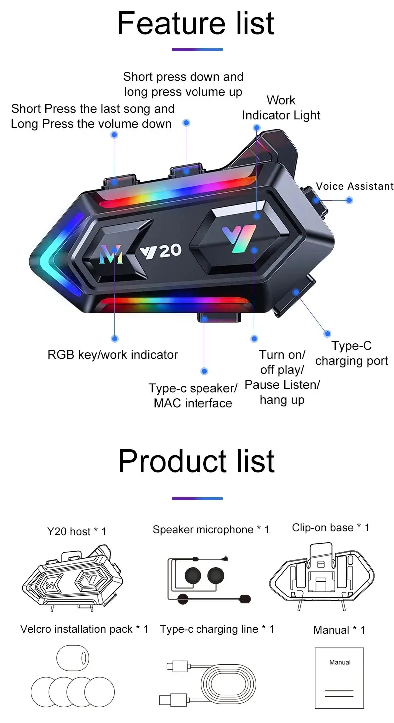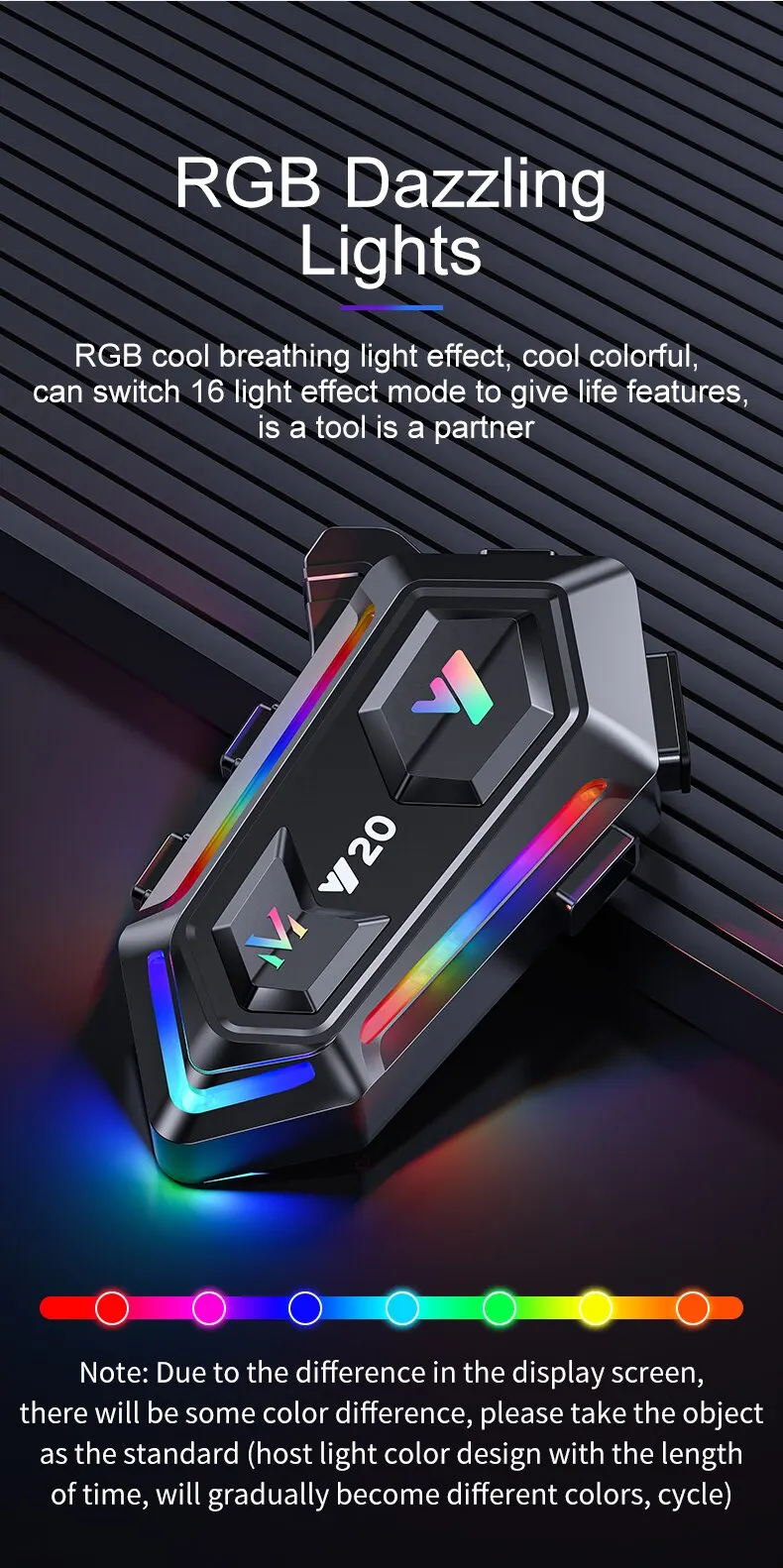 Comprar Y20 motocicleta Bluetooth casco auriculares V5.3 16 tipo modo RGB luces coloridas auricular IPX6 impermeable soporte todo tipo casco