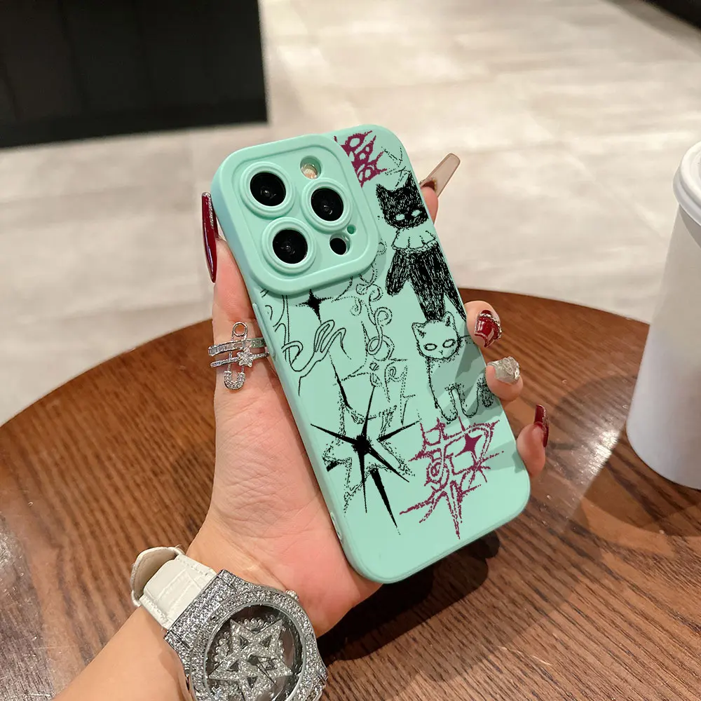Comprar Y2K Cool Cat moda pupila funda de teléfono de silicona para Samsung A03 A10S A12 A13 A21S A22 A30 A31 A32 A42 A50 A51 A71 A72 4G 5G