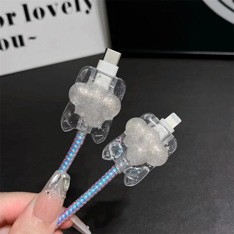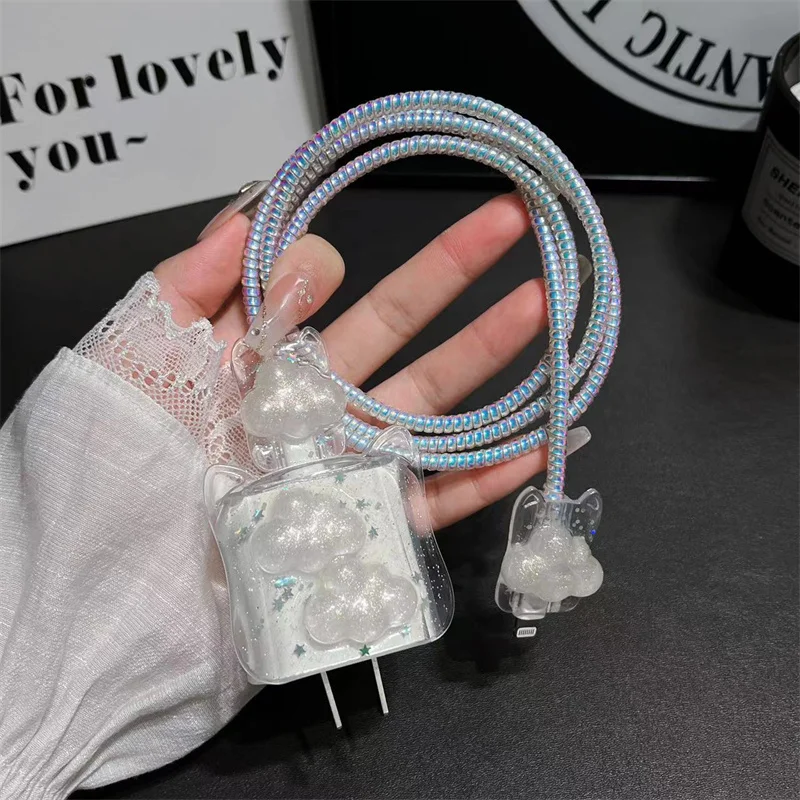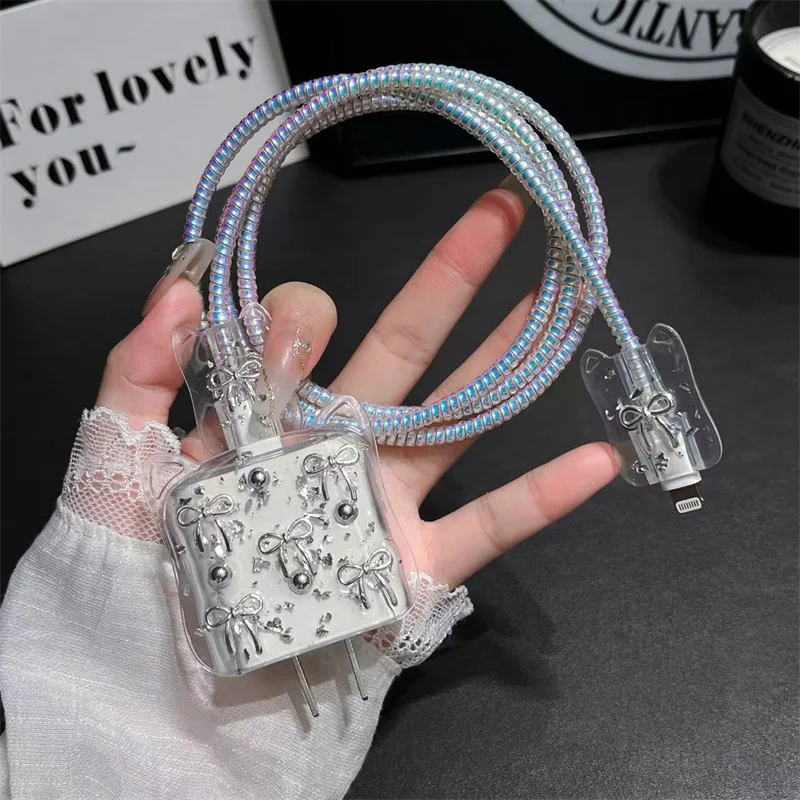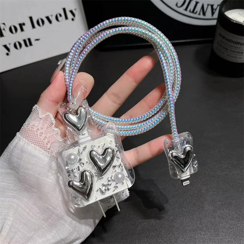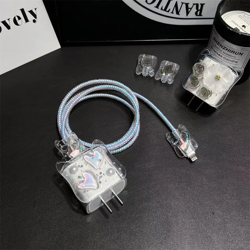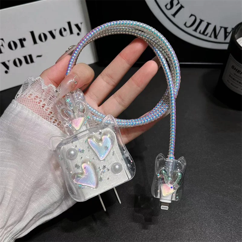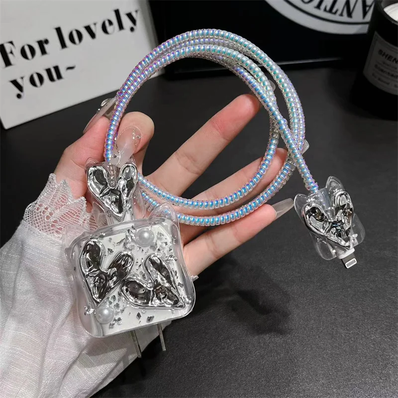 Y2K Corea lindo gato orejas 3D amor corazón Bowknot cubierta de cargador epoxi para IPhone 13 14 18/20W cubierta de protección de carga funda de cargador