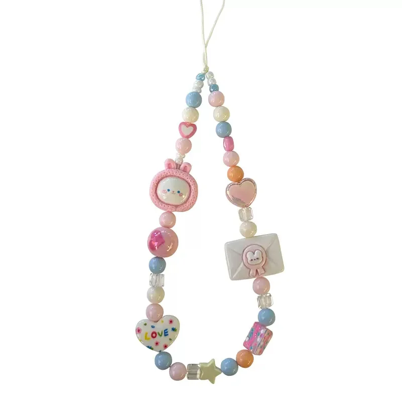 Y2K-Correa para teléfono con cuentas de Color de conejo, cadena con nudo, cordón para teléfono móvil, llavero, bolso, colgante para cámara, cubierta de Airpods