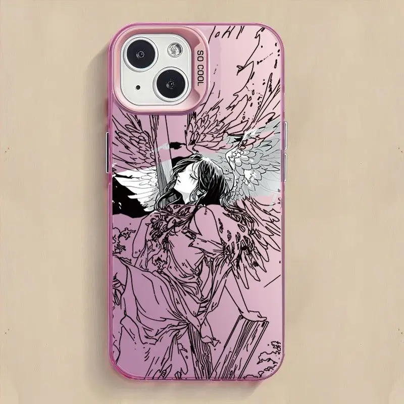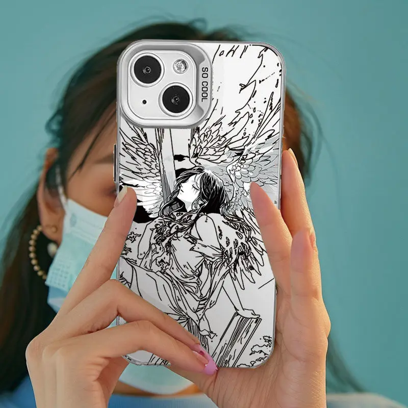 Y2K funda de teléfono de Ángel negro de líneas simples para Samsung A73, A72, A55, A54, A53, A35, A34, A33, A32, A30, A24, A23, A22, A15, 4G, 5G, cubierta mate - imagen 1
