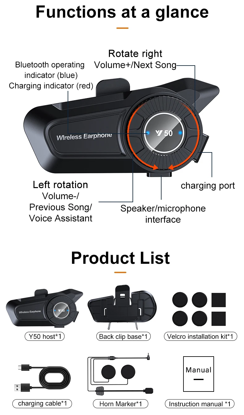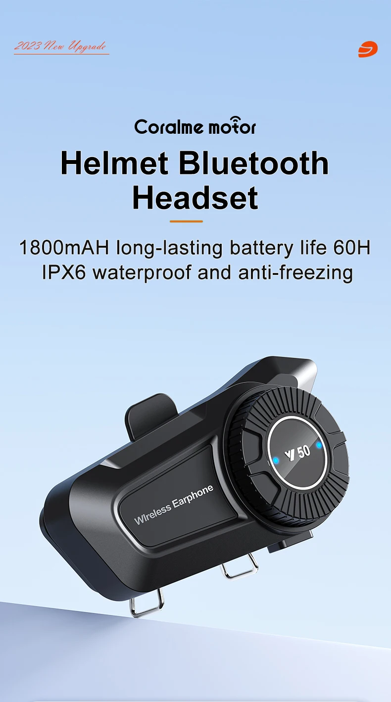 Comprar Y50-Auriculares Bluetooth para casco de motocicleta, cascos resistentes al agua IPX6, batería de larga duración de 1800mAh, 60H, anticongelante, reproductor de música