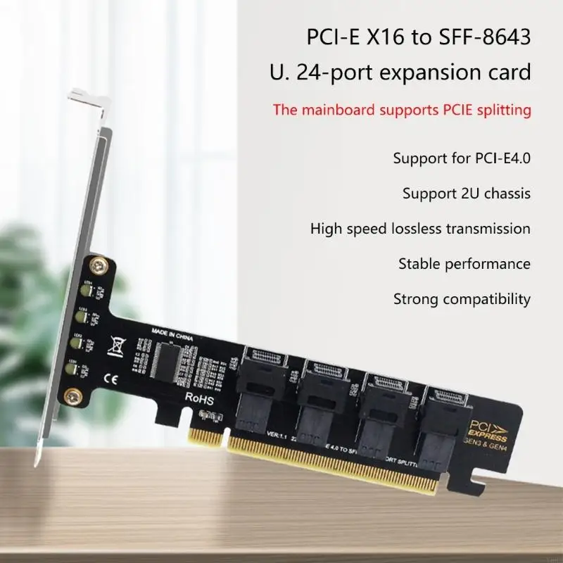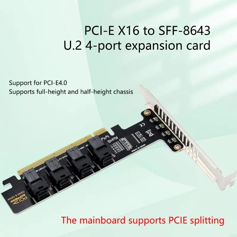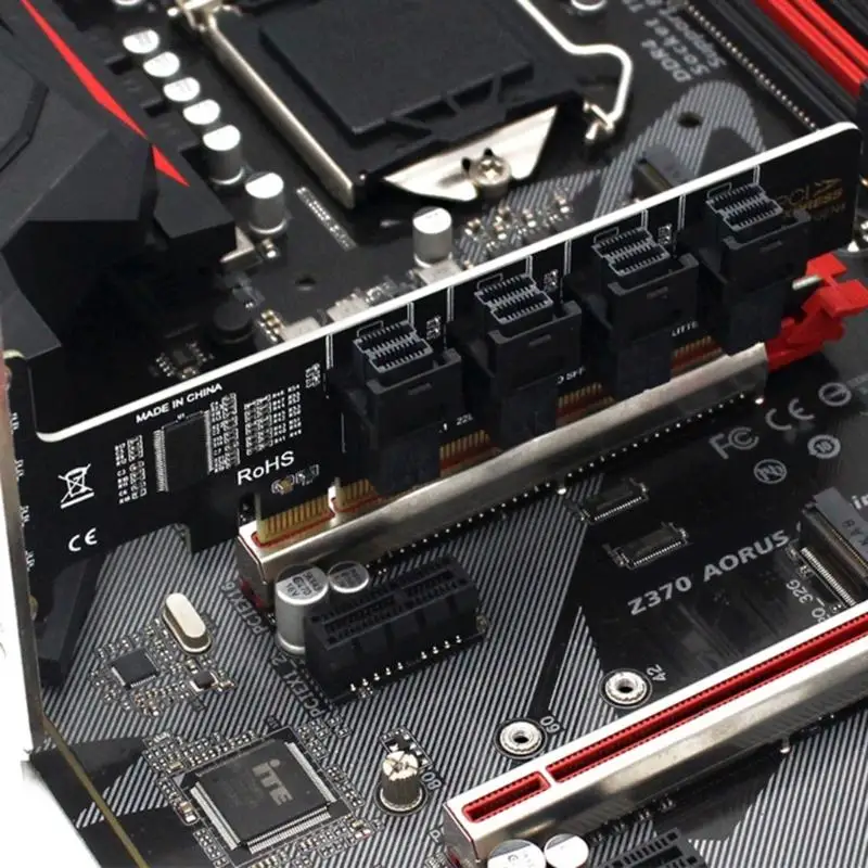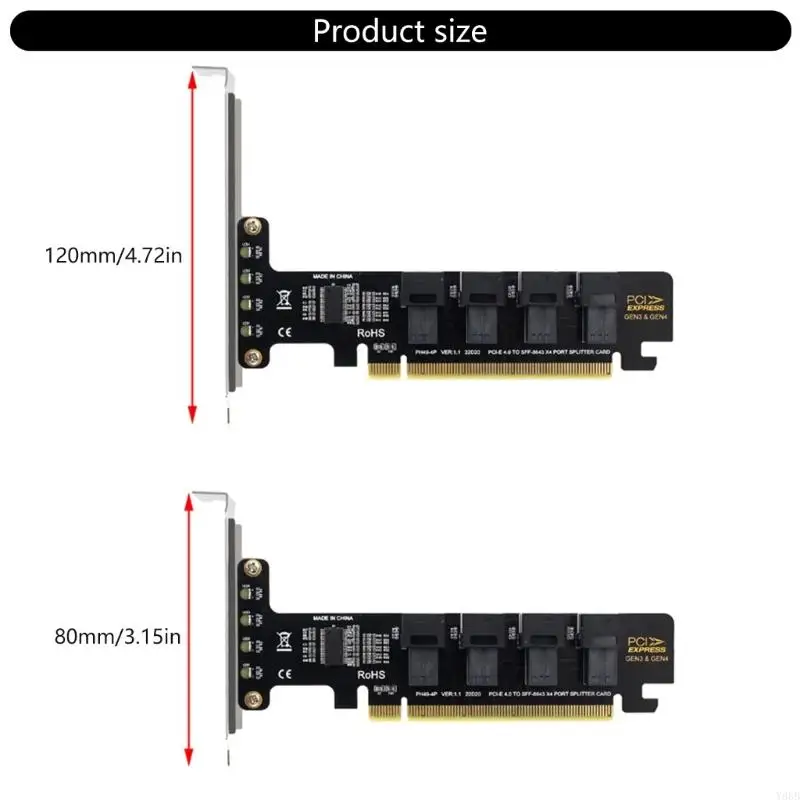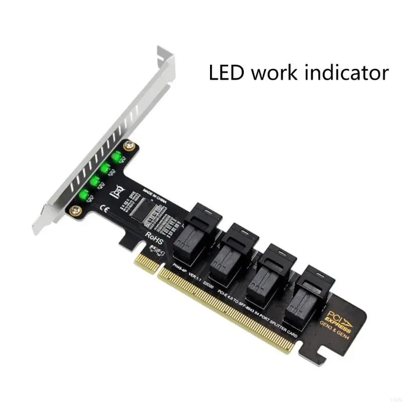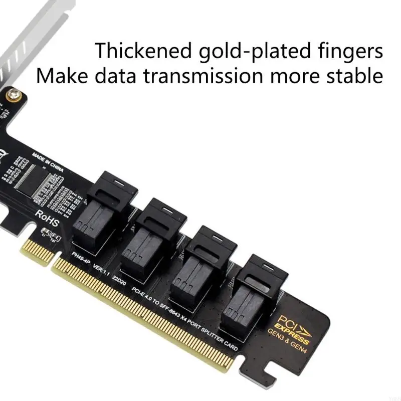 Esta tarjeta divisora admite el estándar PCIE4.0, ofrece hasta 64 GB/s de ancho de banda total y cuenta con funcionalidad plug and play sin necesidad de controlador adicional.
