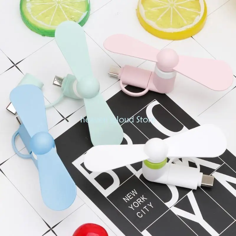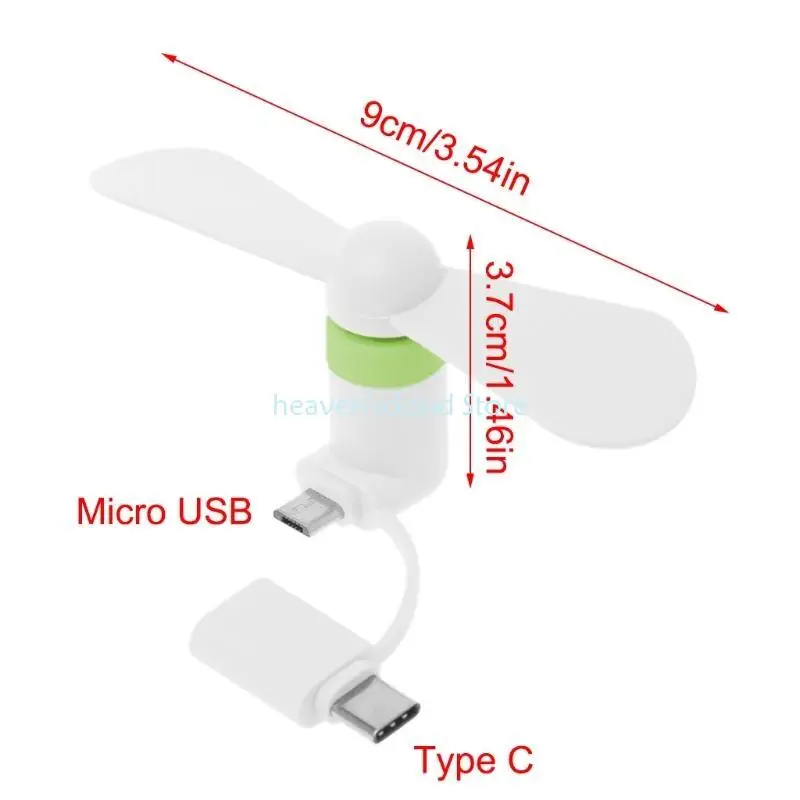 Ventilador pequeño tipo C+Micro USB, bajo consumo de energía.