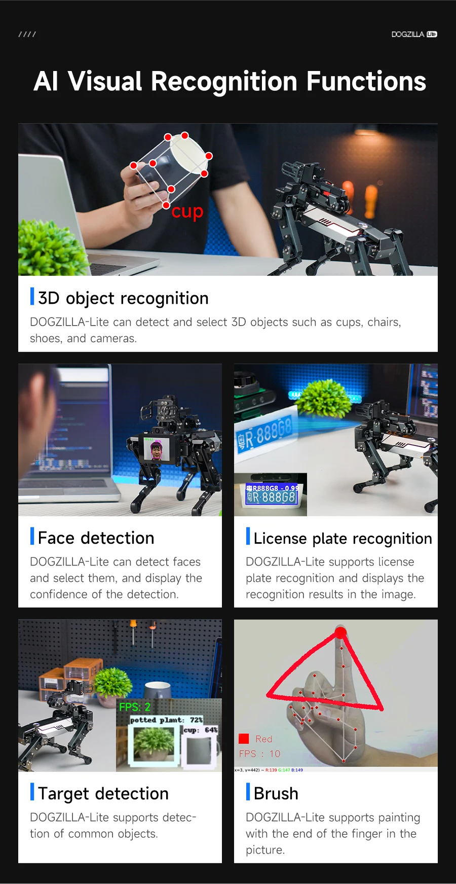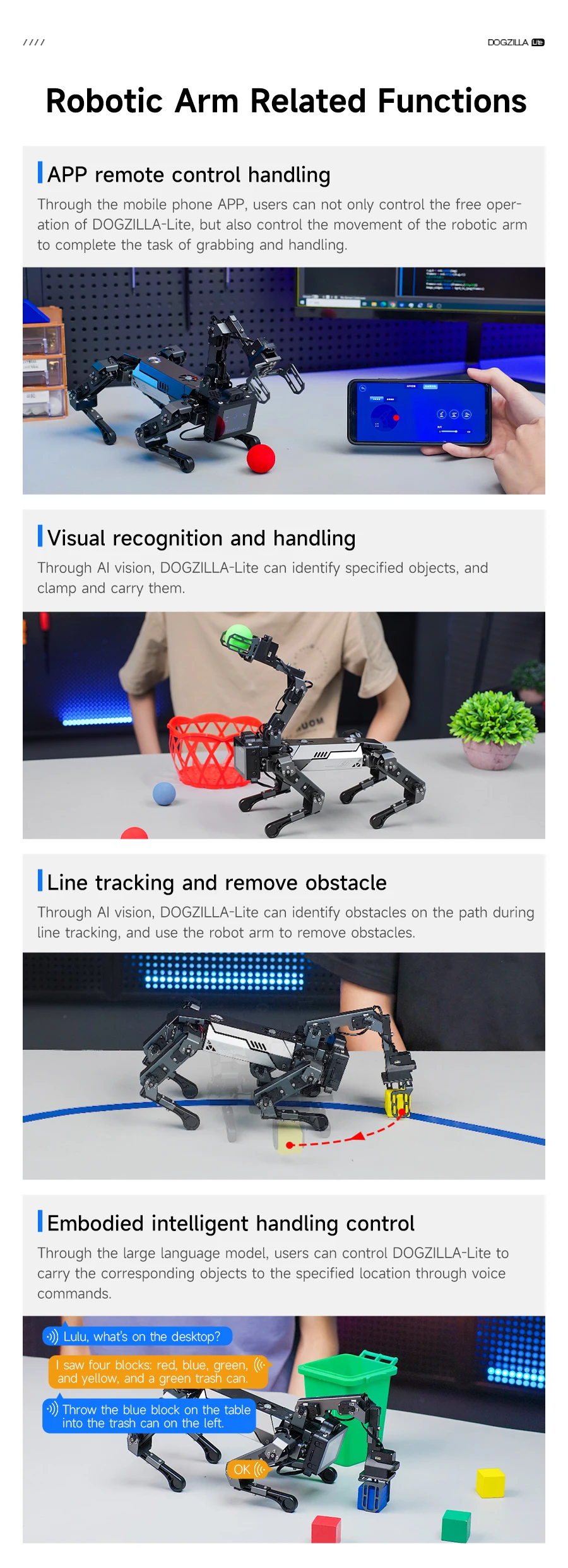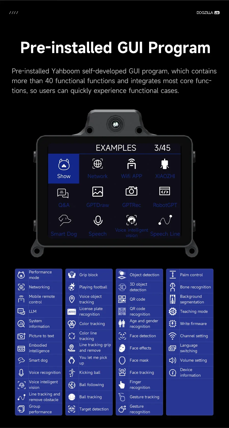 ▶Más de 40 funciones: DOGZILLA-Lite preinstalado con un programa GUI, los usuarios pueden experimentarlo directa y rápidamente después de recibirlo.