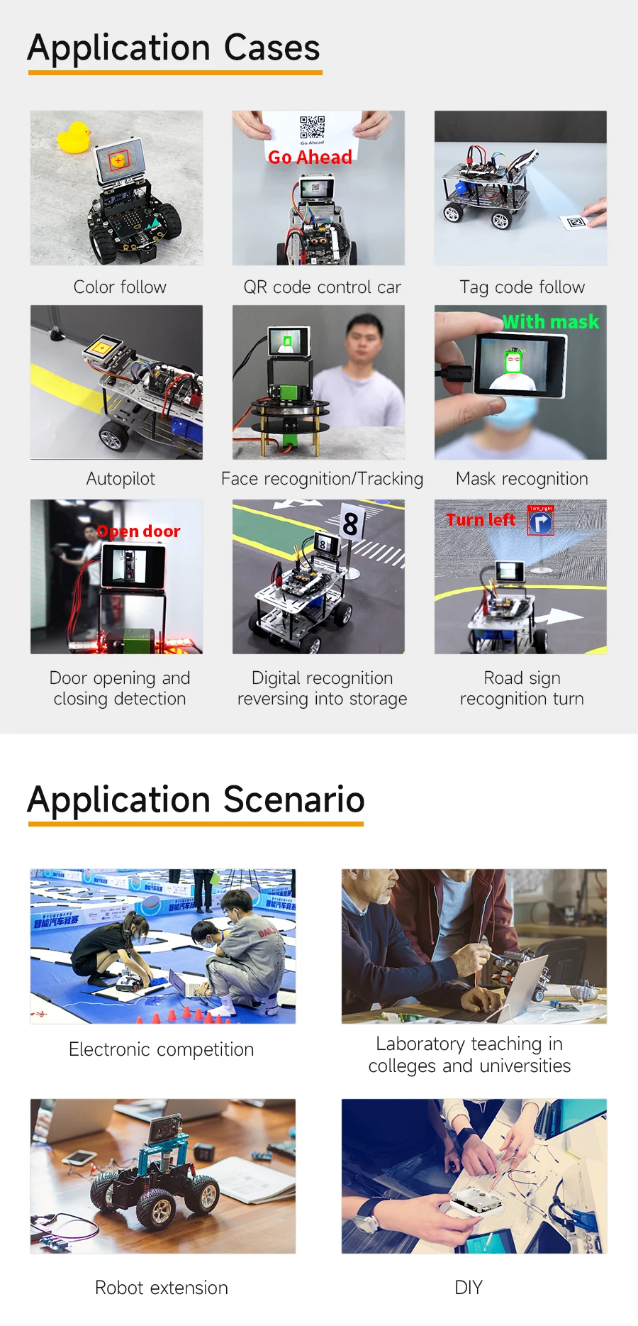 3) Admite reconocimiento facial, reconocimiento de máscaras, reconocimiento de códigos QR, detección de funciones, reconocimiento de números, reconocimiento de colores, reconocimiento de señales de tráfico e inspección de líneas visuales.