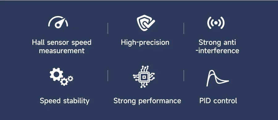3) Motor de cepillo de cobre incorporado con menor ruido.Codificador de 13 líneas, medición de velocidad precisa.