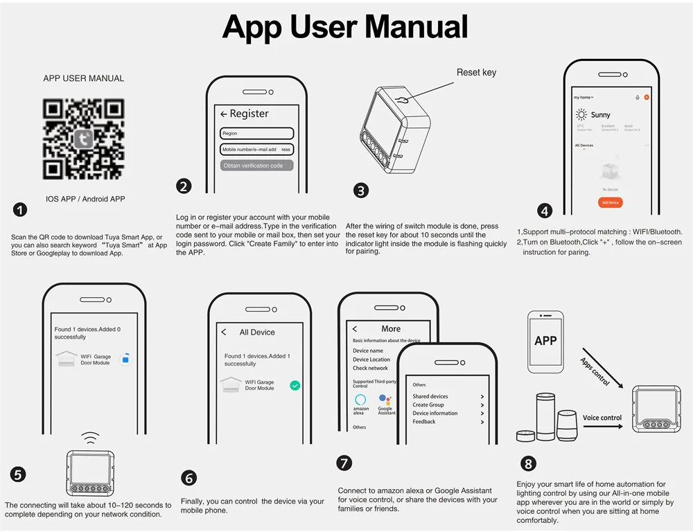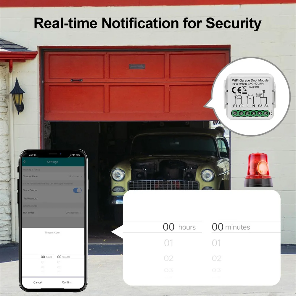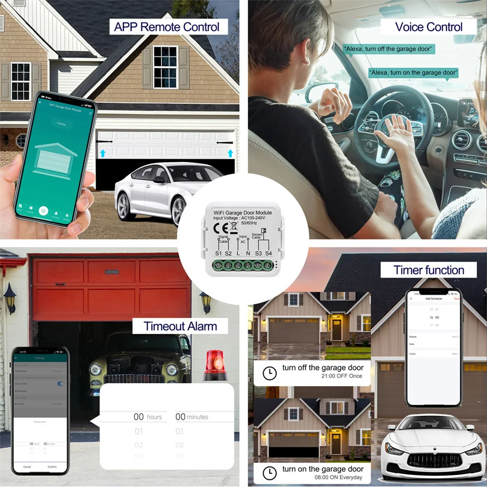 Con este módulo inteligente para puerta de garaje, puede controlar a distancia y por voz la puerta de su garaje. No es necesario abrir/cerrar la puerta repetidamente. Libera tus manos, dejando tu vida más inteligente.
